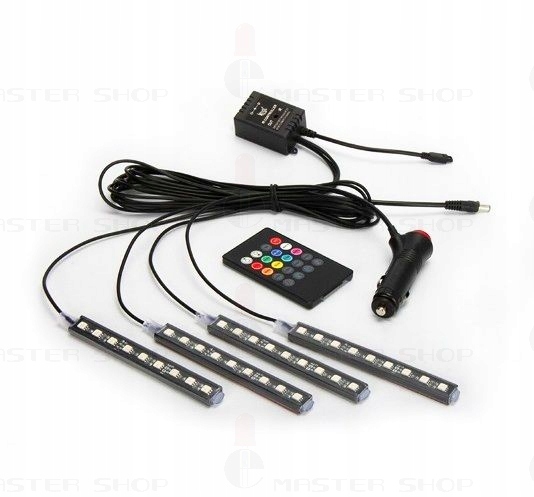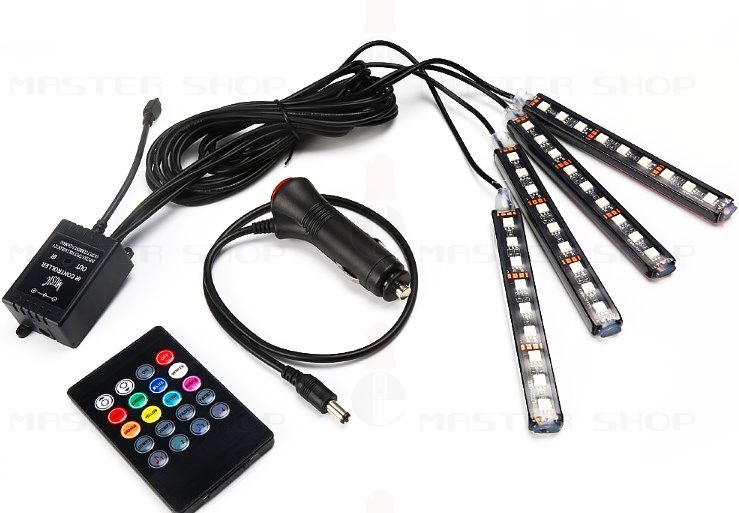 4х9 світлодіодний набір для освітлення внутрішнього простору автомобіля, що реагує на звук, з інфрачервоним пультом дистанційного керування та акумулятора