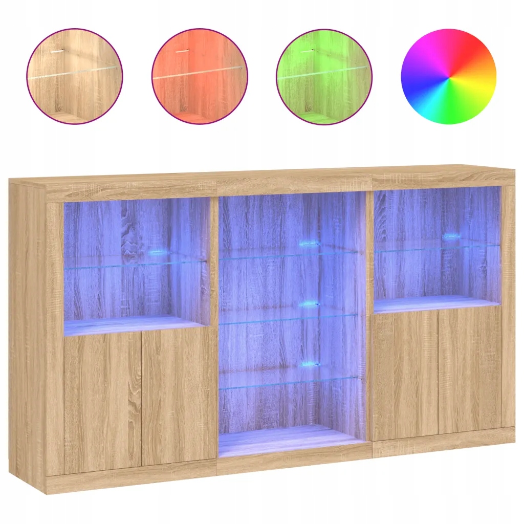 - Світлодіодний світлодіод RGB: Меблі оснащені світлодіодним світлодіодним освітленням з яскравими кольорами. Завдяки можливостям різних налаштувань у меню ви можете легко змінити колір підсвічування і навіть встановити їх так, щоб колір змінювався автоматично. Світлодіоди не лише підкреслюють сучасну природу кабінету, але й додають модного вигляду.
