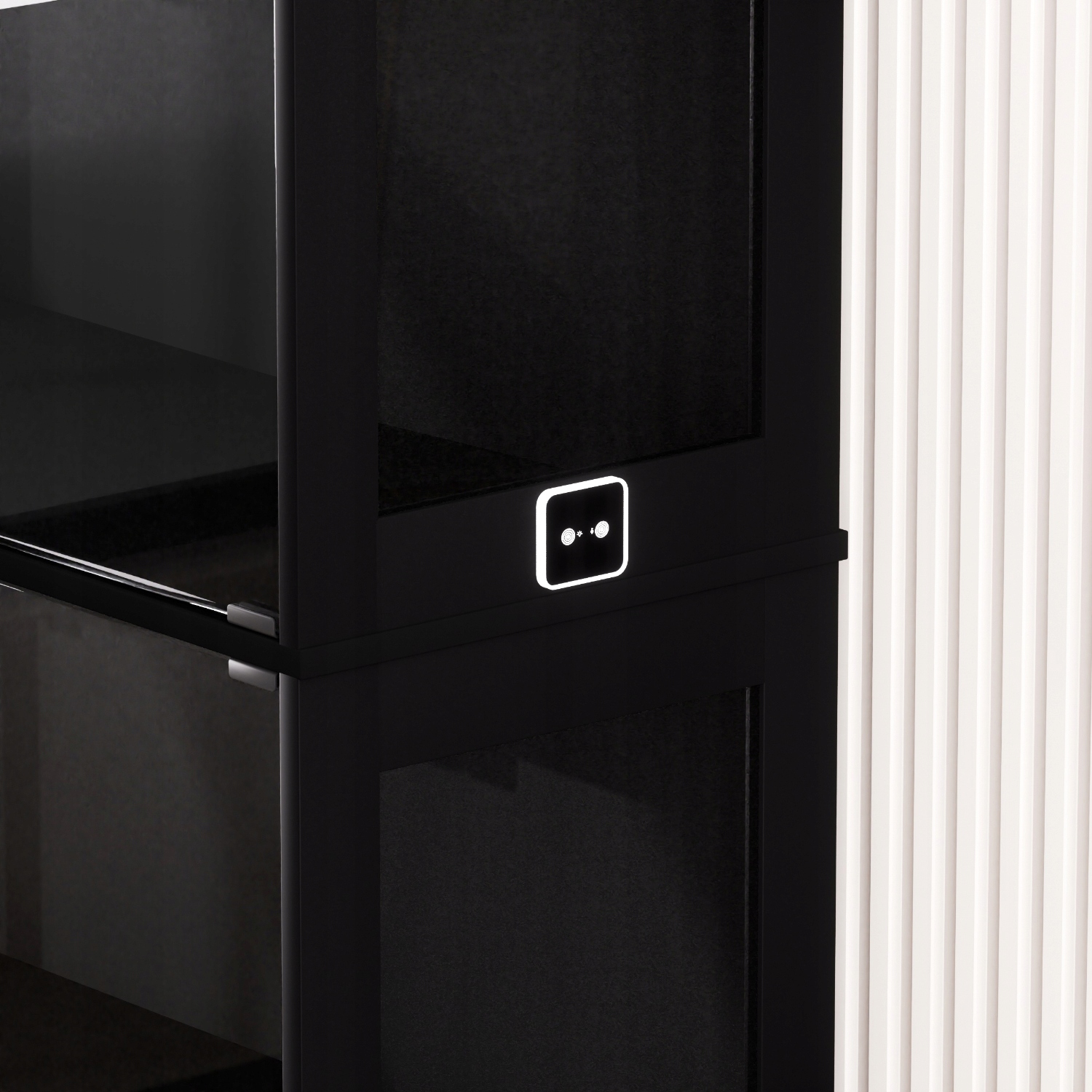Застосування: Ця універсальна шафа-вітрина ідеально підходить для віталень і спалень. Він не тільки надійно зберігає твори мистецтва, книги, трофеї та інші предмети, але й елегантно демонструє їх. Його елегантні скляні дверцята поєднують елегантність і легкість у використанні - просто натисніть кнопку, щоб відкрити свої скарби. Він легко стане центром вашого дому.