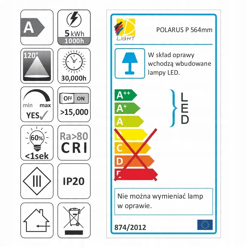 - Номінальний період довговічності світла: 30 000 год
