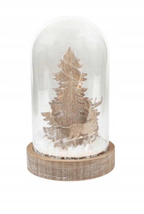 Ця елегантна різдвяна прикраса - це ідеальне доповнення до зимових прикрас. Скляний світлодіодний купол, призначений для внутрішнього використання, забезпечує тонке і тепле освітлення завдяки 10 світлодіодам з теплим білим світлом. Створений для введення затишної атмосфери, це буде чудовим прикрасою для столу, комода або підвіконня.