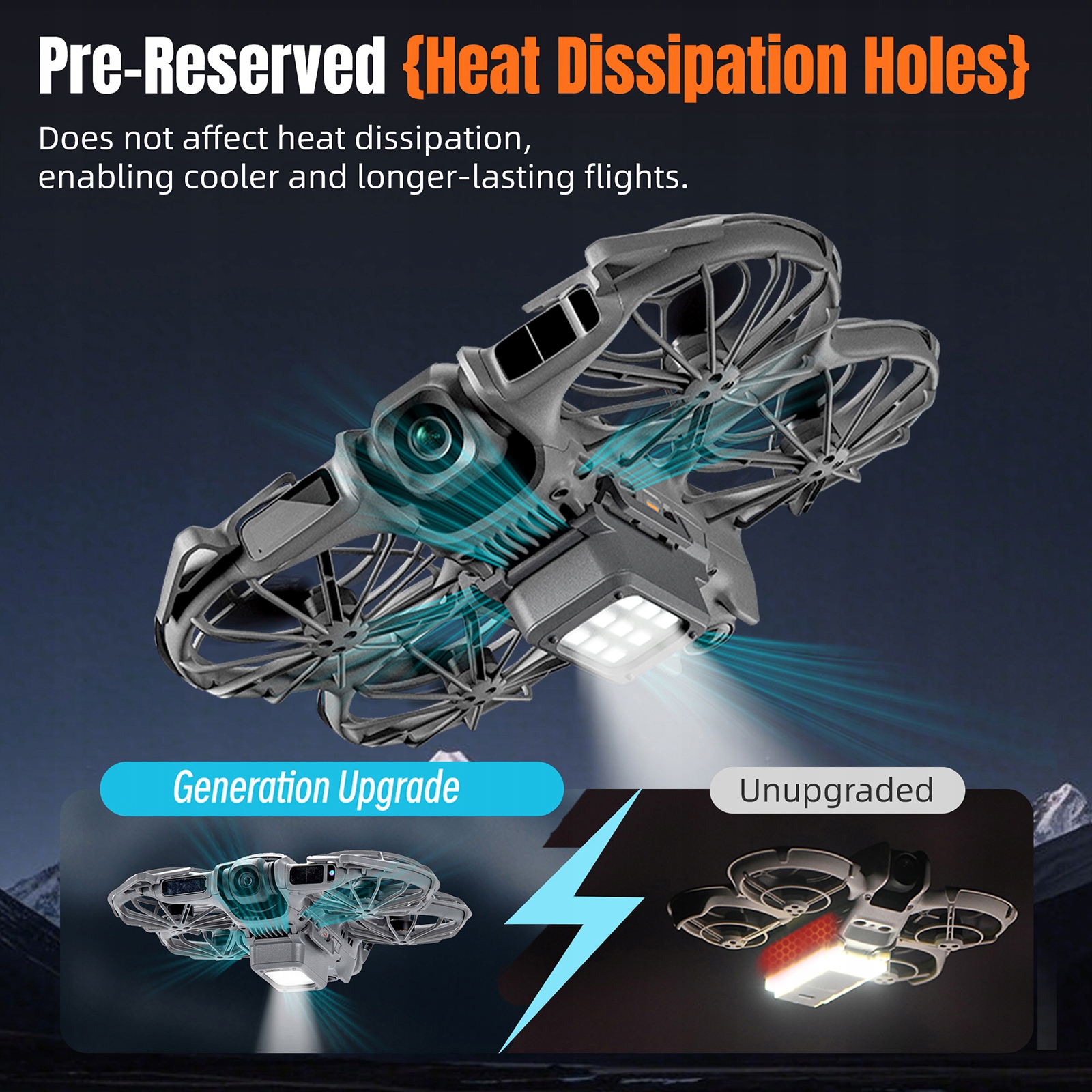 Ідеальна сумісність з DJI NEO 2. Спеціально розроблений для дрона DJI NEO 2, цей світиться шасі ідеально підходить до контурів фюзеляжу. Підвищте стабільність польоту в умовах слабкого освітлення, забезпечуючи додаткове освітлення для чіткіших нічних знімків.
