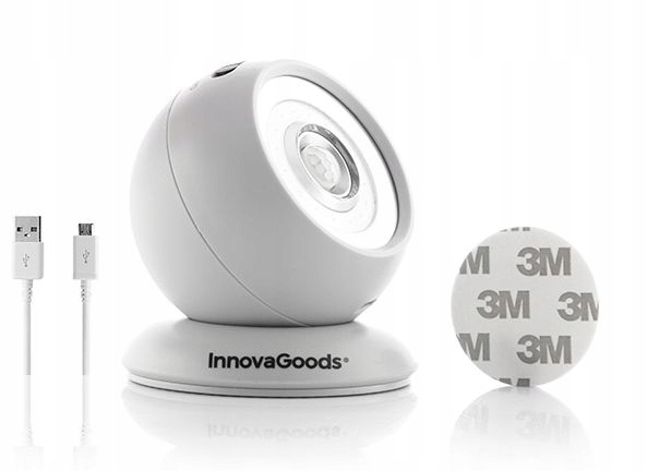 Багатофункціональний і багатопозиційний світлодіодний світильник з точним точковим освітленням, з додатковим датчиком руху та регульованим нахилом (кут регулюється в діапазоні 360º). Завдяки можливості заряджання та портативному та компактному дизайну, з незалежною магнітною основою та легким кріпленням за допомогою високоякісного клею 3M (не вимагає монтажу та інструментів), це надзвичайно зручне та універсальне рішення для точкового освітлення окремих місць. Крім того, світильник також може живитися від батарейок (3 x AAA, не входять в комплект). Він оснащений 16 білими світлодіодними лампами (190 лм) і може бути встановлений у 3 режимах роботи: увімк./вимк./автоматичний, залежно від того, вмикається та вимикається світло вручну чи автоматично після виявлення руху (він має діапазон до 5 м і залишається увімкненим протягом приблизно 25 секунд). Ця оригінальна світлодіодна лампа пропонує багато можливостей застосування. Його можна використовувати як настільну лампу, стельову лампу, настінну лампу або як портативну лампу, яку можна легко брати куди завгодно. Ідеально підходить для шафи, гардеробної, ванної кімнати, холу, гаража, підвалу тощо. У комплект входить кабель USB – micro USB.