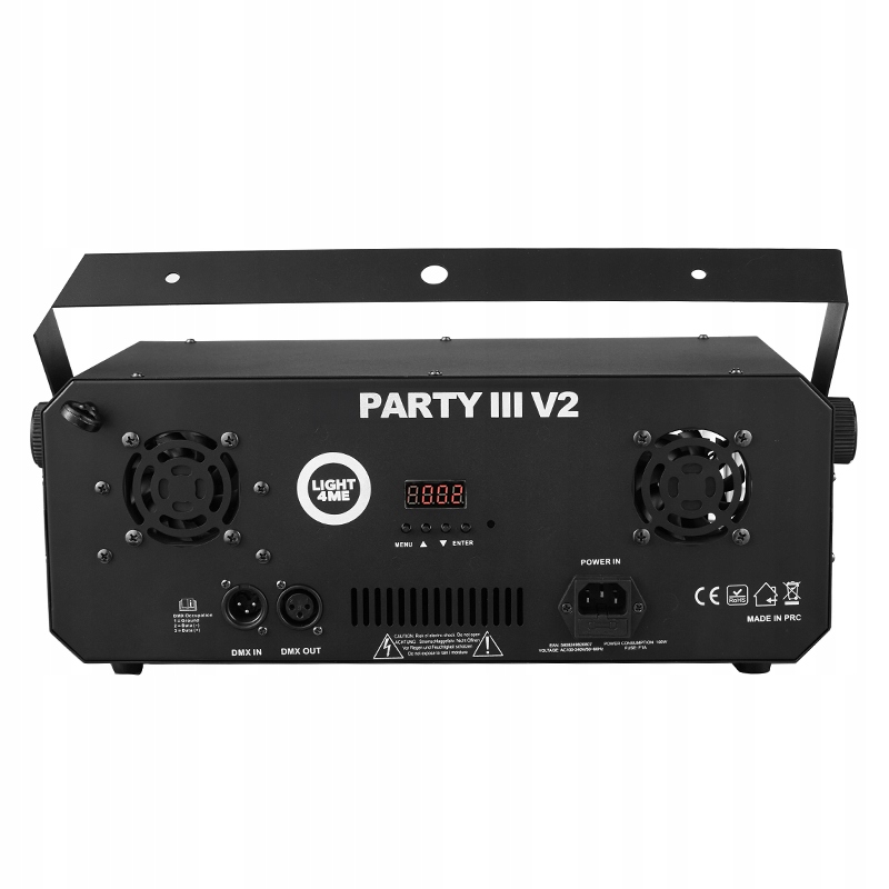 LIGHT4ME PARTY III V2 надзвичайно простий у використанні завдяки інтуїтивно зрозумілій панелі керування, яка складається з чіткого світлодіодного дисплея та 4 зручних кнопок. Пристроєм можна керувати вручну або за допомогою бездротового ІЧ-пульта дистанційного керування, що особливо оцінять мобільні діджеї та організатори заходів. Користувачі можуть вибрати один з 4 режимів роботи: автоматичний, звуковий, головний/підлеглий і DMX. Завдяки роз'ємам для передачі даних DMX ви можете підключити кілька пристроїв і легко керувати їх роботою за допомогою протоколу DMX. Диммер повного діапазону дозволяє точно регулювати яскравість окремих світлових ефектів. Регульована швидкість стробоскопа і ефект дербі дозволяють додатково збагатити освітлювальний прилад і додати йому динаміки. Двонаправлене обертання гобо та лазерний ефект дають ще більше можливостей для створення незабутніх світлових шоу ✅.