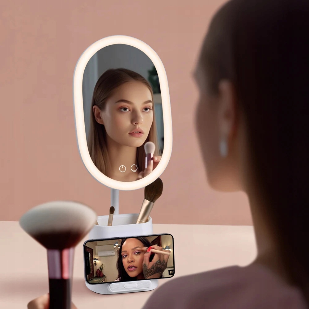 Функціональна підставка також відіграє роль організатора, що дозволяє зручно зберігати дрібні предмети. Ви можете вкласти в нього, наприклад, пензлі для макіяжу або невелику косметику, щоб завжди мати їх під рукою.