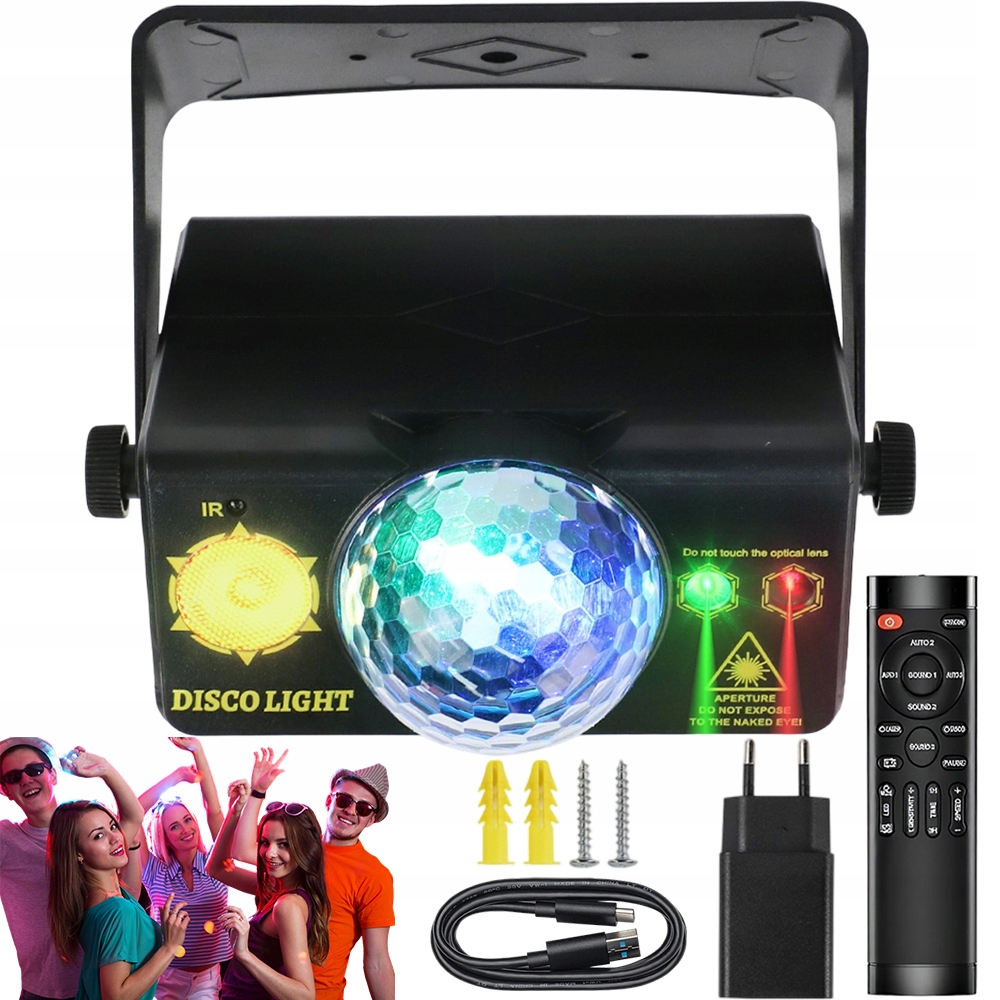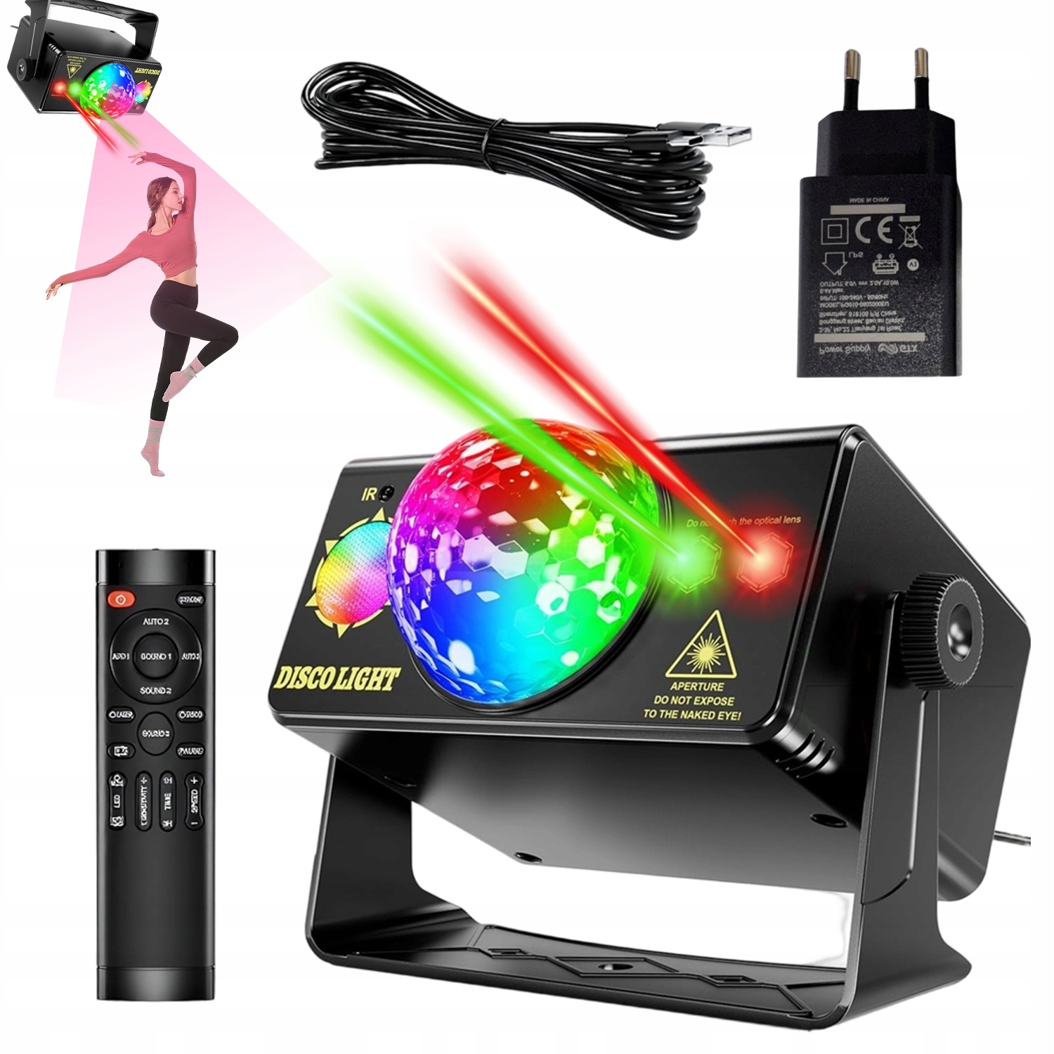 • Повний контроль: Пульт дистанційного керування дозволяє змінювати кольори, режими (автоматичний, стробоскоп, зовнішній звук) і встановлювати таймер. 🕒
