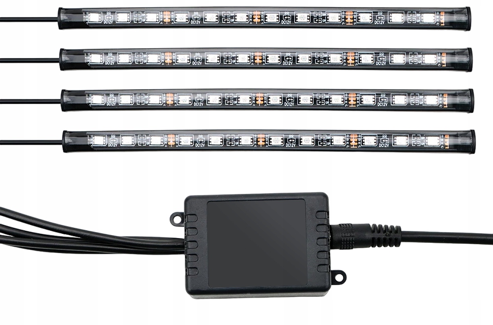 Набір світлових стрічок RGB створить неповторну атмосферу в салоні вашого автомобіля. Світлодіоди, керовані пультом дистанційного керування, світяться багатьма кольорами та по-різному, залежно від ваших уподобань. Просто правильно прикріпіть стрічки та розмістіть електропроводку в автомобілі та насолоджуйтеся атмосферним освітленням.