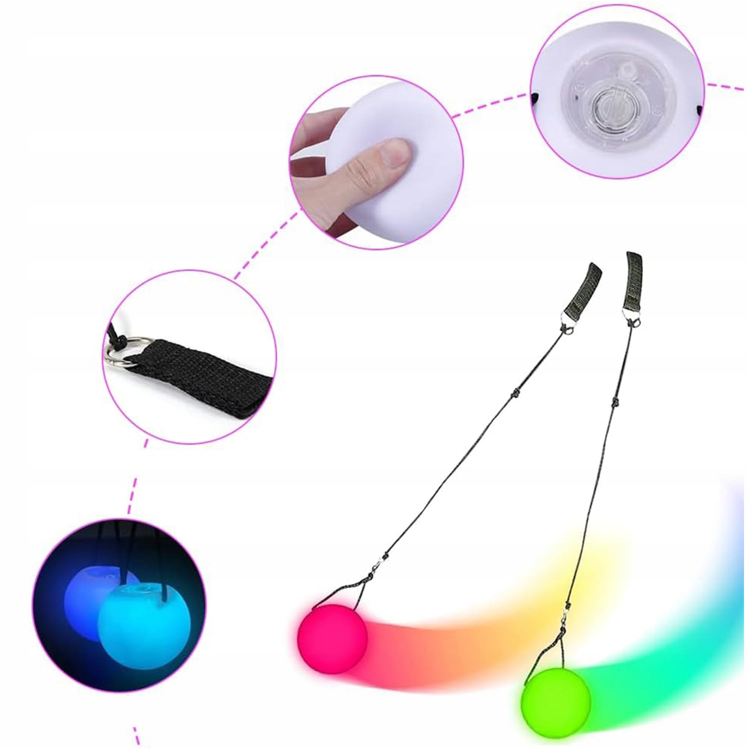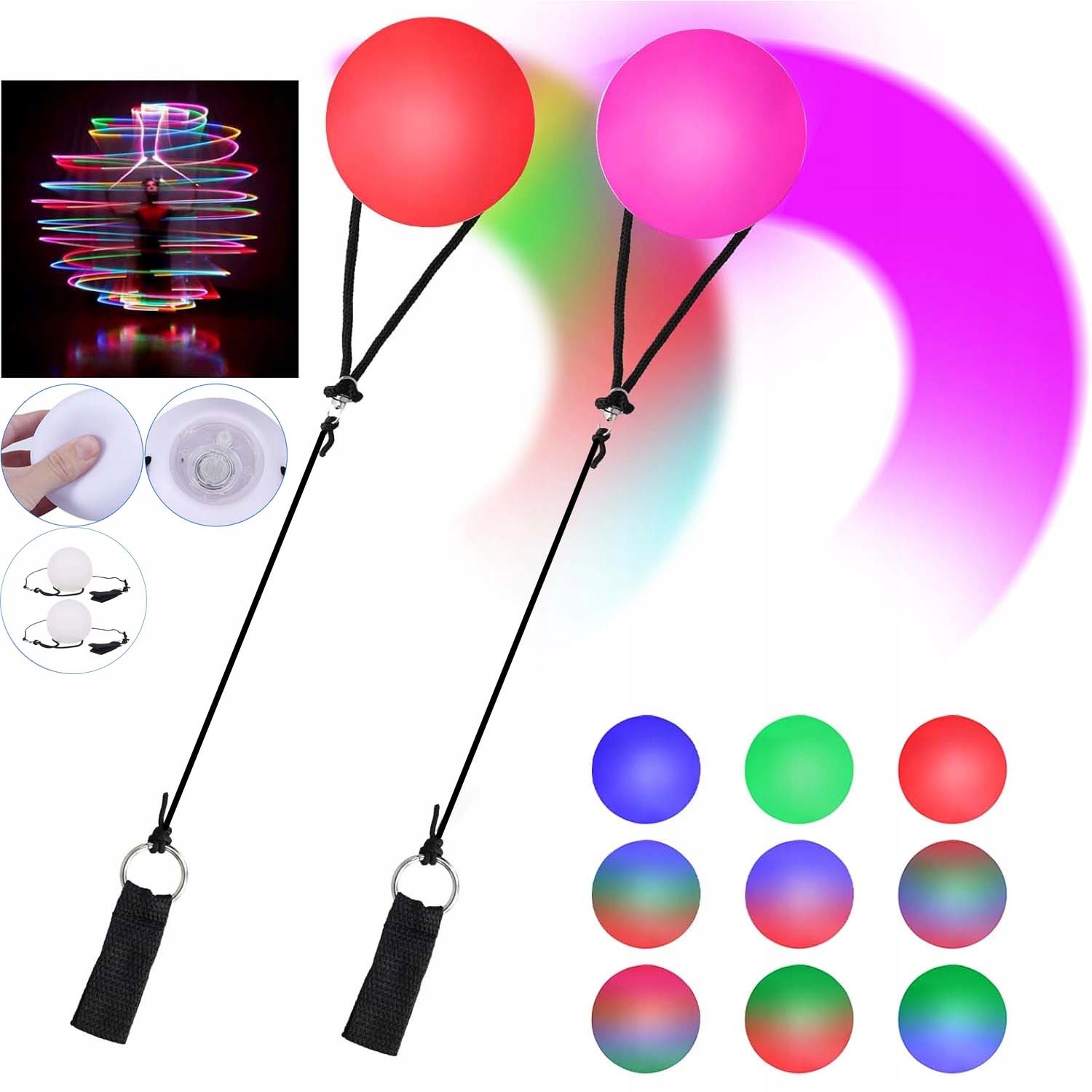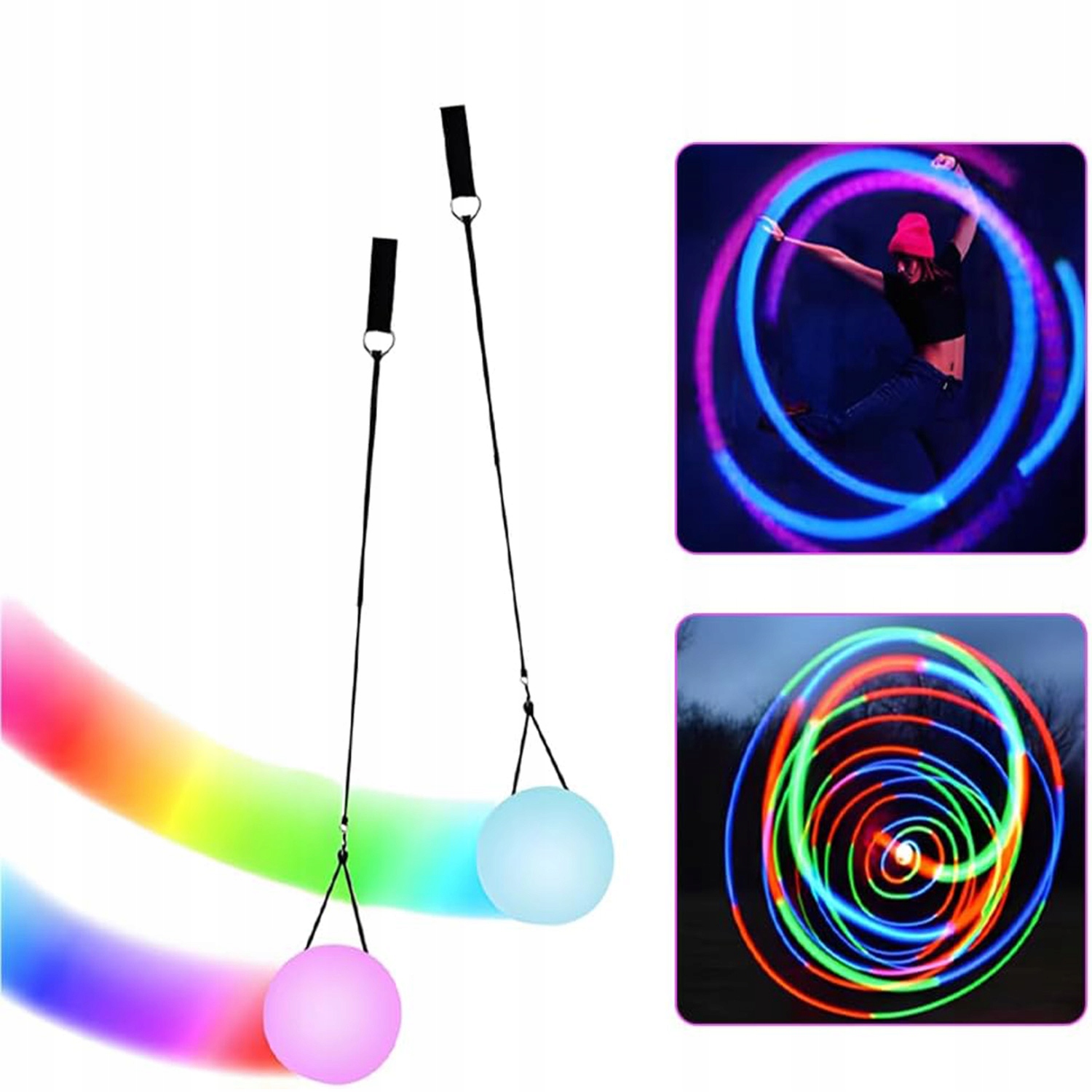 🪀🪀 🪀🪀 🪀🪀 🪀🪀 POI Файли з світлодіодним підсвічуванням, набором 2 кулях, що жонглюють POI, яскравими жонглюючими кульками в кольорах веселки з бляшанкою, куля Poi з світлодіодним підсвічуванням з регульованою подвійною петлею повідом