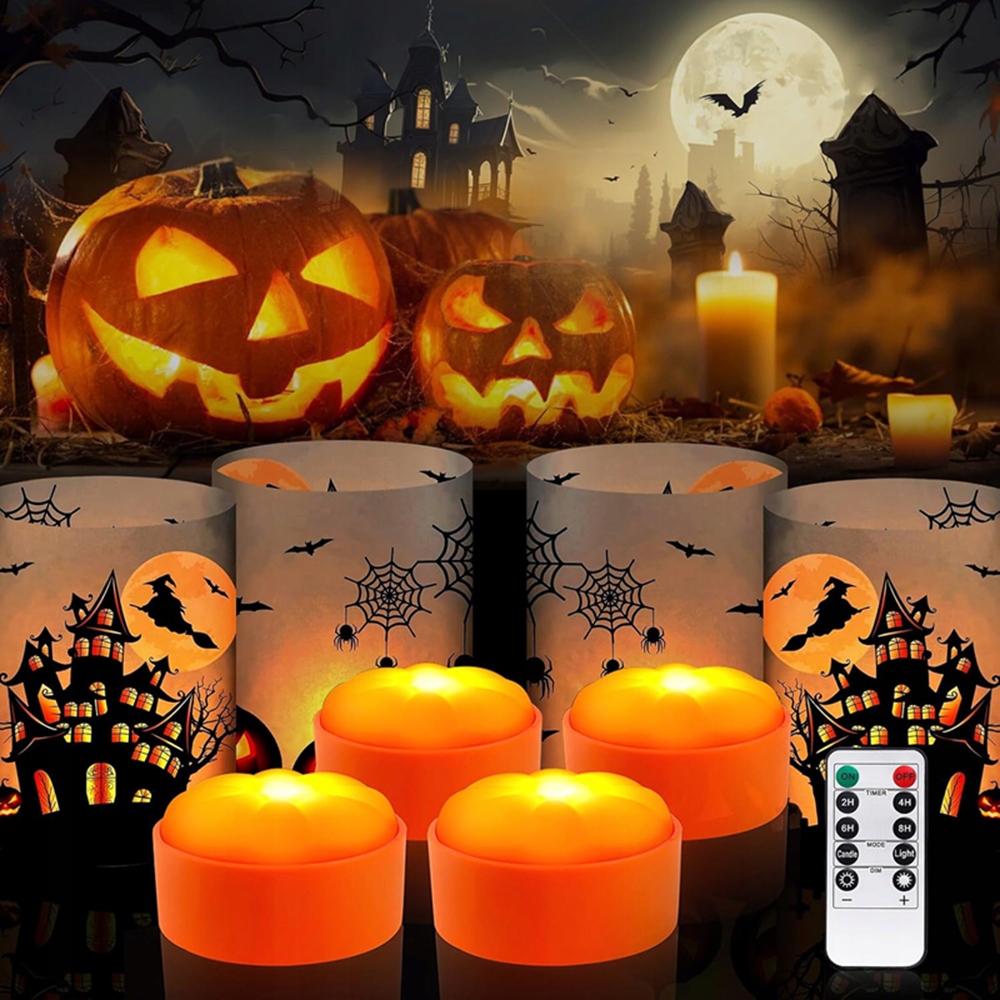 🎃СВІТЛОДІОДНА ЛАМПА З ДИСТАНЦІЙНИМ КЕРУВАННЯМ, КОМПЛЕКТ З 4 СВІТЛОДІОДНИХ ЛАМП У ФОРМІ ЛІХТАРЯ, ГАРБУЗОВА ЛАМПА НА ХЕЛОВІН, НІЧНА ЛАМПА НА ХЕЛЛОВІН У ФОРМІ ГАРБУЗ🎃