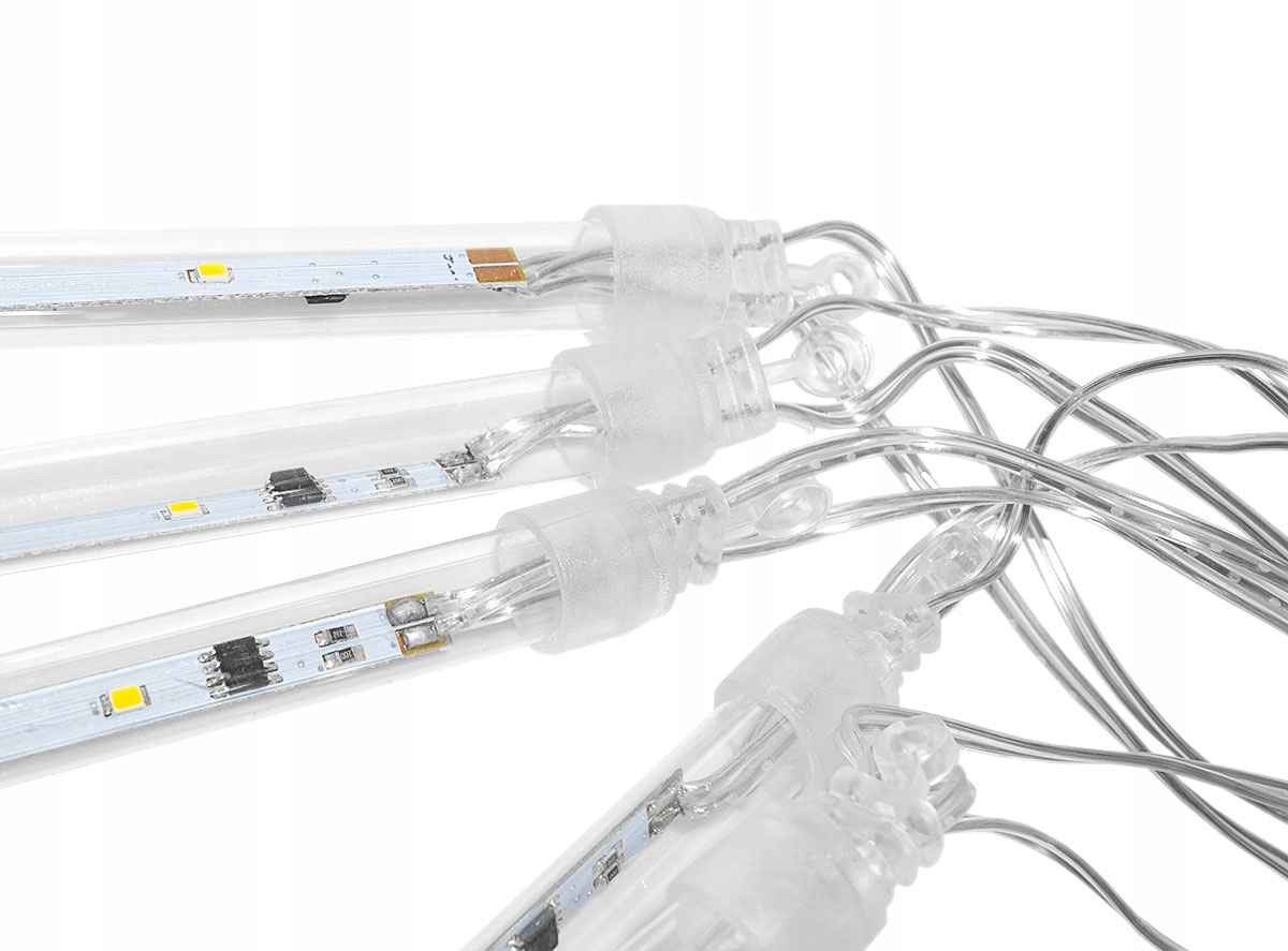 Набір складається з 8 бурульок довжиною 50 см, які світяться теплим білим кольором і мають штекер, який дозволяє з’єднувати набори.