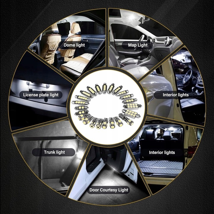 23 PCS: 5xt10 5050 5SMD, 2xt10 1206 8SMD, 1XBA9S 5050 5SMD, 2X5050 2SMD 31MM, 3X505050505055 36MM, 4X 4x5050 4SMD 42 мм, 2х505