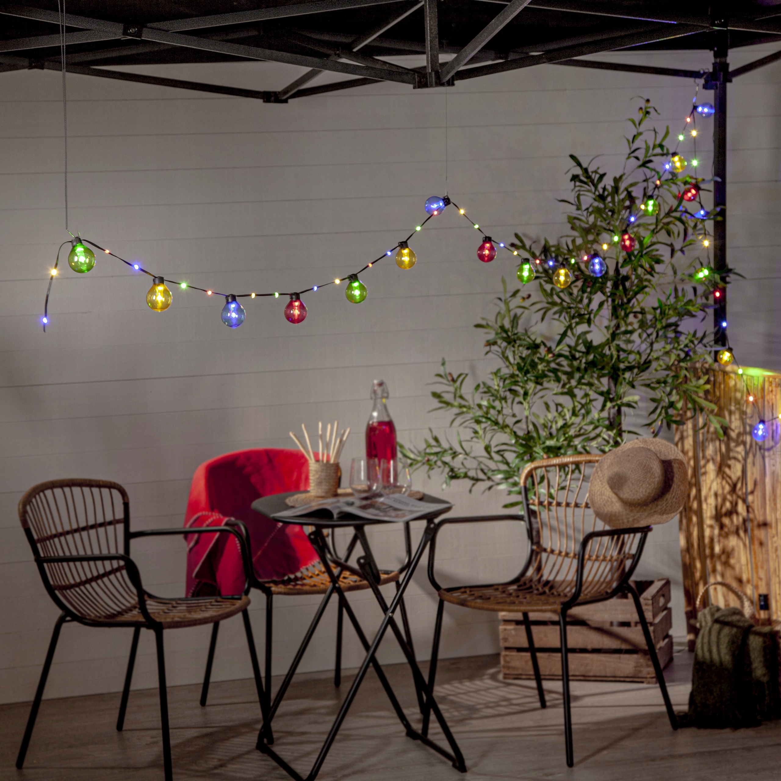 висвітлюйте свій сад, балкон або тераса з бунтом кольорів завдяки вражаючій світлодіодній гірлянді. Барвисті світильники та динамічні ефекти освітлення зробить кожен простір унікальною атмосферою - ідеально підходить для літніх вечорів, подій на свіжому повітрі або різдвяного прикраси. Гірлянда завдовжки 5,3 метра, а додаткові 5 метрів шнура живлення забезпечують зручне розташування в будь -якому місці. Працює з мережевого розетки