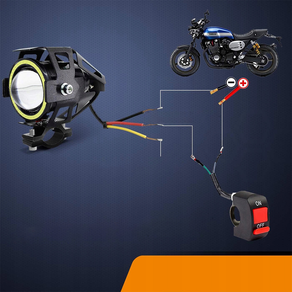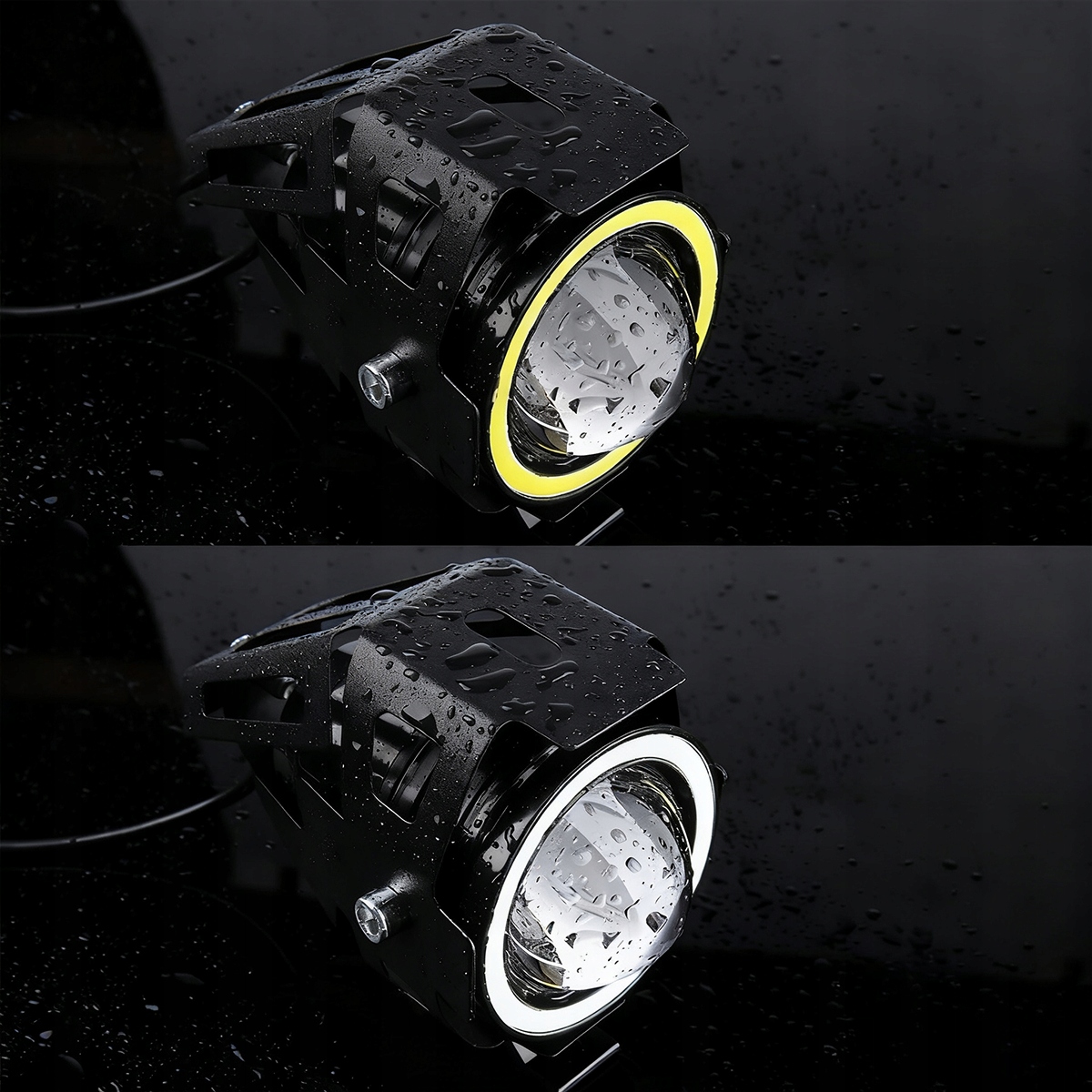 Мотоциклетні галогенні фари RING LED U7, пара 30 Вт, тип Angel Eye, кільцеві LED протитуманні фари/3 режими освітлення (дальнє світло, ближнє світло, строб)