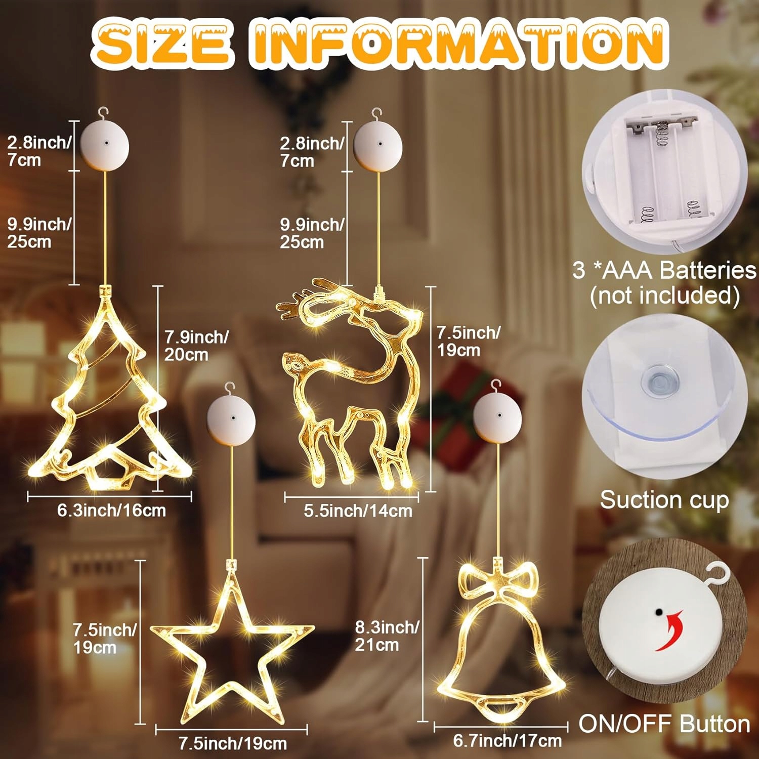Світлодіодні новорічні вогні з присоскою на вікно 4 шт.