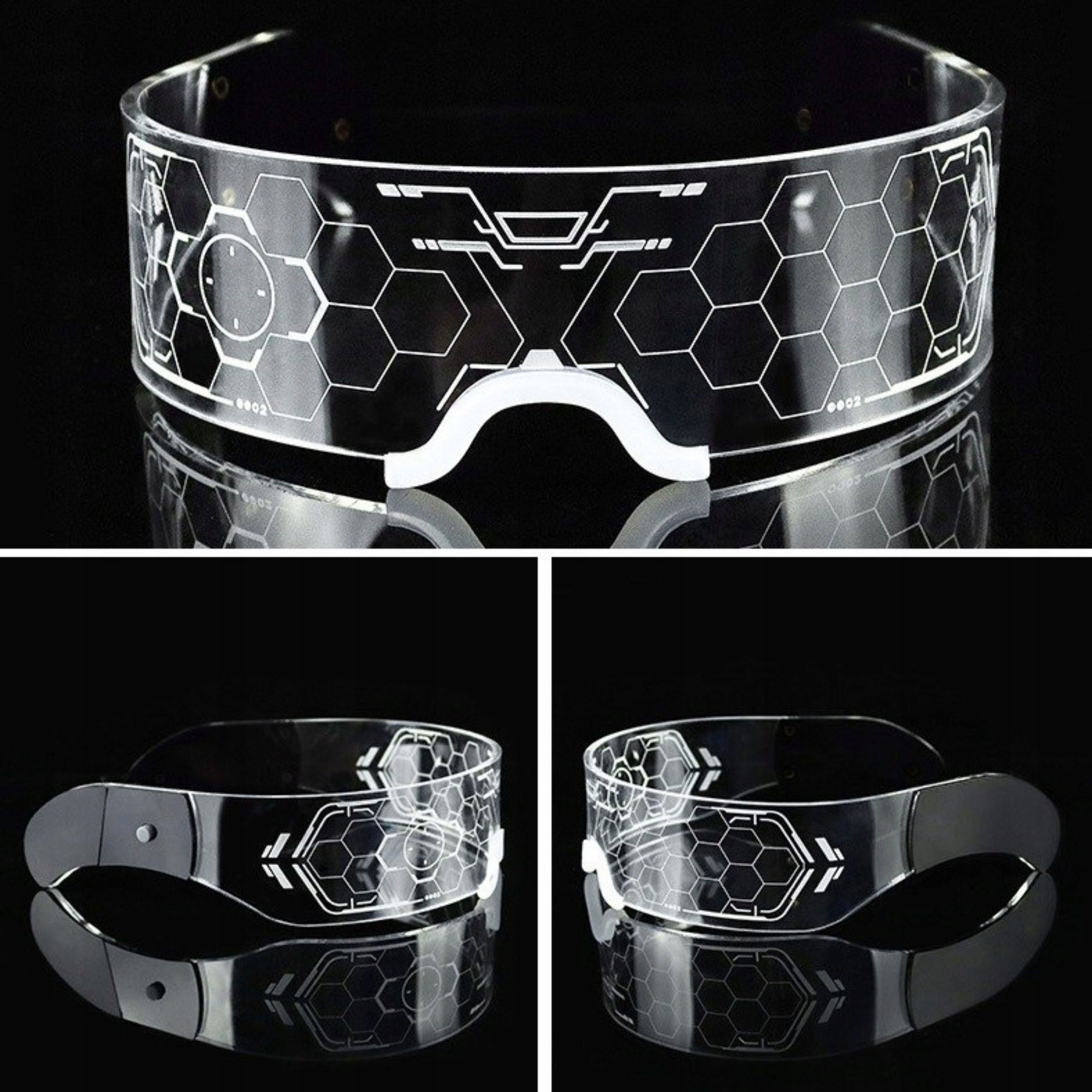 - Футуристичні окуляри, оснащені двома незалежними модулями, що живляться від окремих батарейок (по одній у кожній руці). Завдяки цьому ви можете встановлювати два різні кольори освітлення одночасно, створюючи унікальний візуальний ефект!