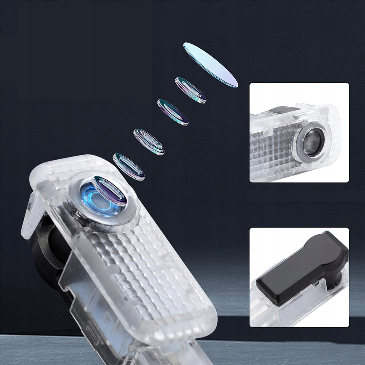 Дверне освітлення використовує світлодіоди високої яскравості. Після того, як світло проходить крізь об’єктив із надвисокою роздільною здатністю, проекція на підлозі не спотворюється та не знебарвлюється.