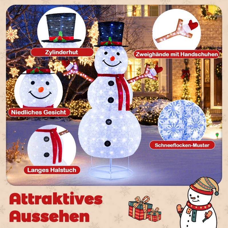 світлодіодні сніговиків: оснащені 200 прохолодними білими вогнями, святковий сніговий сніговик висвітлює сад яскравим сяйвом, що додає святкової атмосфери. Прикраса приверне увагу як вдень, так і вночі.