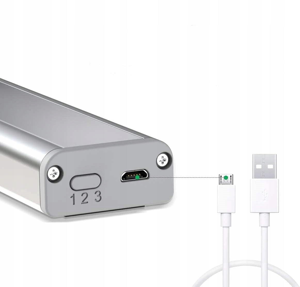 , оснащений справжнім акумулятором 800 мАг яскравість після повного заряду. Коли акумулятор слабкий, його можна легко зарядити з прикріпленим кабелем зарядки USB, акумулятор ніколи не потрібно замінювати. Екологічно чистий та економлять гроші.