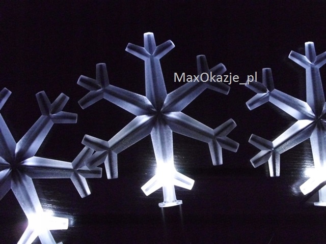 - На кожному стовпчику є сніжинка, яка підсвічується світлодіод. Довжина кабелю між наступними елементами становить приблизно 35 см. (чорний колір дроту)