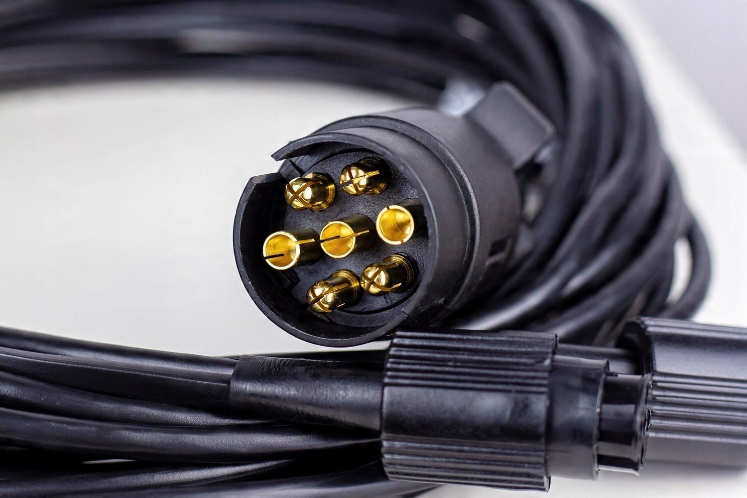 Тема продажу - це повна електрична установка для легких причепів без контурних вогнів. Його довжина 7 метрів . Він має пробку Bajonet 5 штифта та 7 -контактна штепсельна пошта .