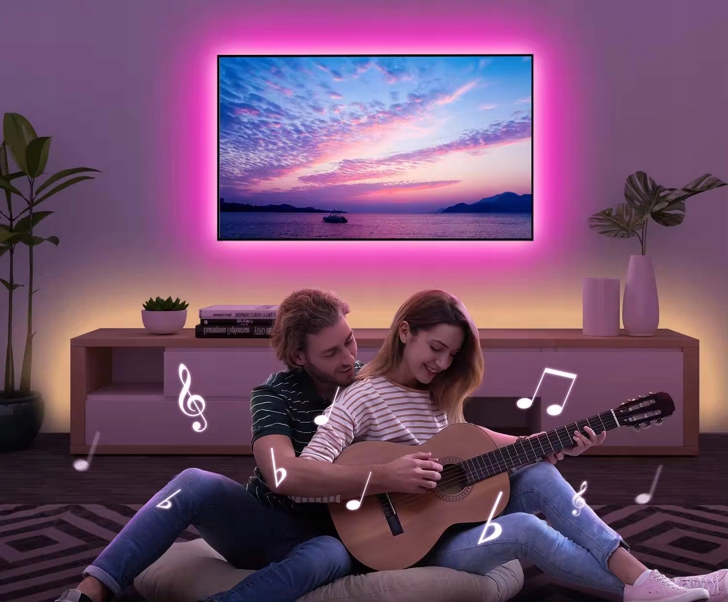 Світлодіодні стрічки з регульованою яскравістю та кольорами ідеально підійдуть до кольору інтер'єру будь-якого предмета меблів, полиці, шафи, гаража, тераріуму, телевізора, комп'ютера тощо, вмикайте їх одним натисканням і додайте чарівну атмосферу кожній кімнаті! Світлодіодне освітлення чудово підкреслить характер інтер’єру та здивує кожного домочадця.