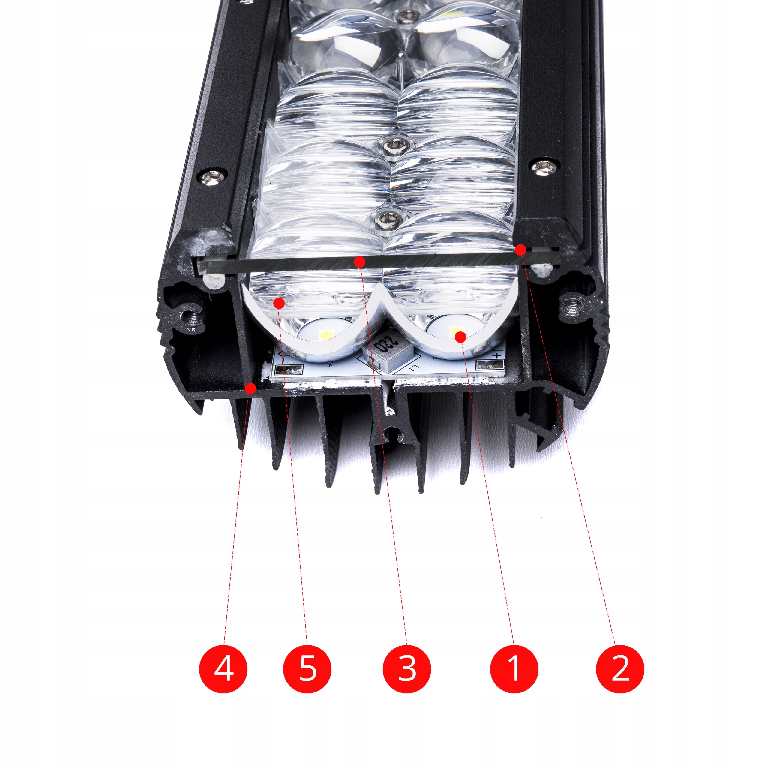 5. Останнє покоління 5D відбивачів та лінз кілька разів збільшуючи потік світла з діода. 5D лінзи в першій фазі сильно фокусують світло, після чого на наступній фазі вони збільшують його міцність і кут поширення.