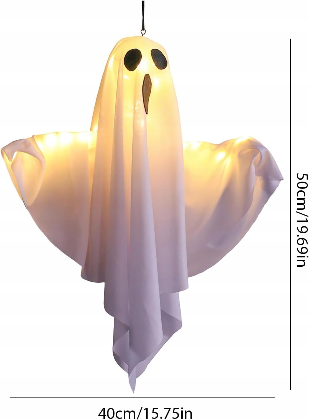 Otrzymasz dwa wiszące, dekoracyjne światełka halloweenowe w kształcie duchów o wymiarach 50 x 40 cm, które udekorują Twoje Halloween i stworzą upiorną, a zarazem radosną, świąteczną atmosferę. Смішні обличчя привидів не будуть лякати ваших дітей. Хеллоуїнські вогні живляться від трьох батарей LR44 (включені); Просто вийміть ізоляційну фольгу з батареї. 4 Вони не тільки чарівні та чарівні, але й екологічні, завдяки енергозберігаючим світлодіодам, які економлять енергію. Вони ідеально підходять для саду, зовні або інтер'єру як прикраса на Хеллоуїн.