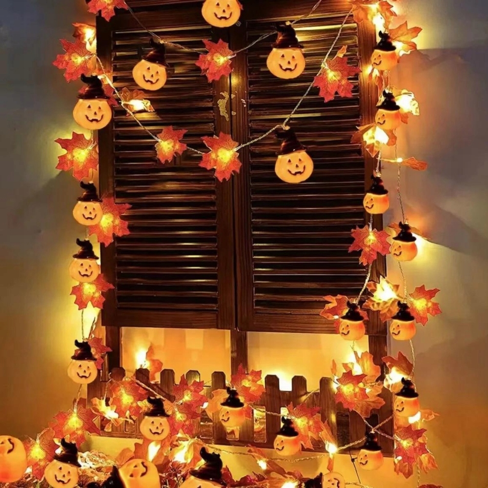 Світлодіодні світильники легкої гірлянди 1,5 м листа осінь гарбузи прикраси Хеллоуїн