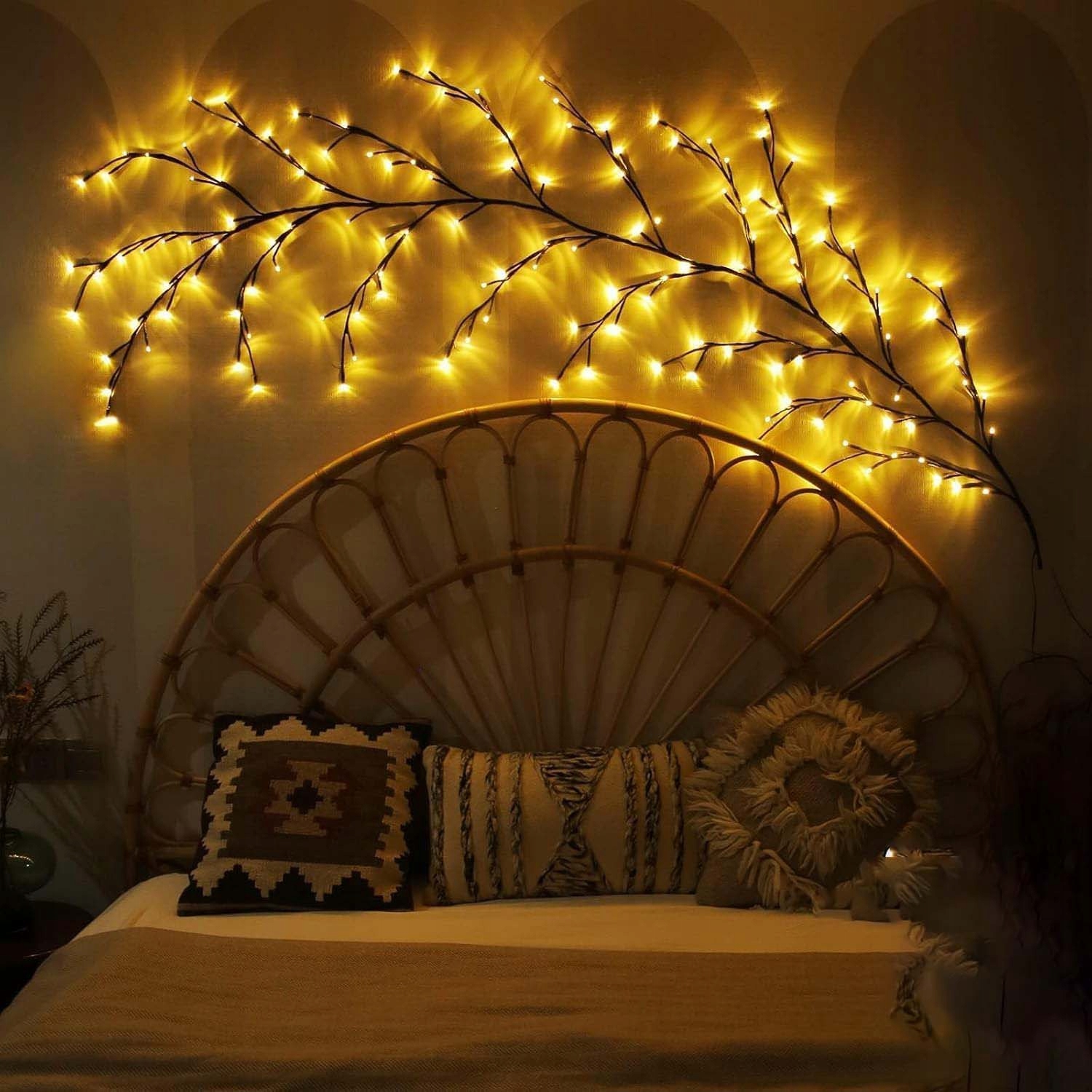 Наші світильники у формі виноградної лози мають 2-контактний штекер, мають довжину 2,3 метра та оснащені 144 світлодіодами, розташованими на 18 гілках. Світлодіодні світильники на гілках легко встановлюються і знімаються. Зроблені вручну зі штучних гілок верби, вони створюють неповторну природну атмосферу. Усі галузі декоративних світильників для дому гнучкі. Їх можна легко формувати та налаштовувати для створення унікального вигляду. Створіть у своєму просторі романтичну та привабливу атмосферу.