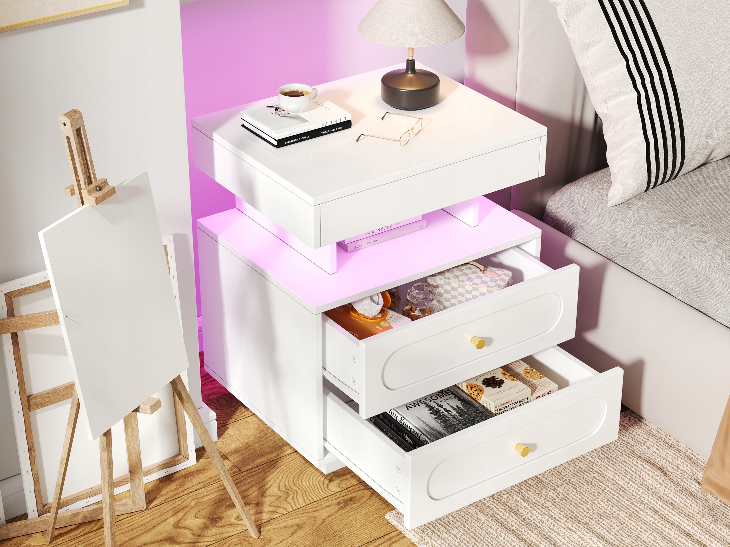 - Зробіть свою спальню функціональною та стильною підсвіченою тумбочкою.