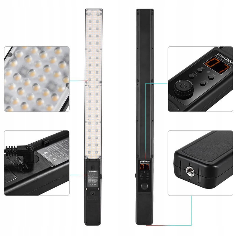 лампа - меч yongnuo yn -360 - це перше покоління популярного поздовжнього серії, світлодіодних світлодіодних панелей, оснащених діодом природного світла з регулювання кольорової температури та додатковими діодами rgb . Лампа має 360 світлодіодів, з яких 160 відповідає за світло гаряче з кольором 3200 k , наступним 160 генерує світло холодно з температурою 5600 k , а решта 40 diod . Як результат, за допомогою одного зручного пристрою користувач може отримати практично кожен колір світла. Працюючи в режимі природного світла, лампа також може похвалитися дуже високим crri рівнем 95 завдяки якому він вірно відтворює насичені, яскраві кольори.