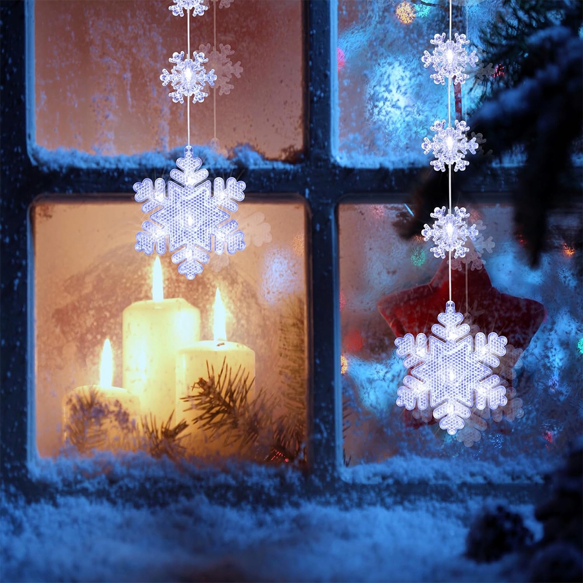Світлодіодні ялинкові прикраси на вікно, що світяться, підсвічування сніжинки 2x