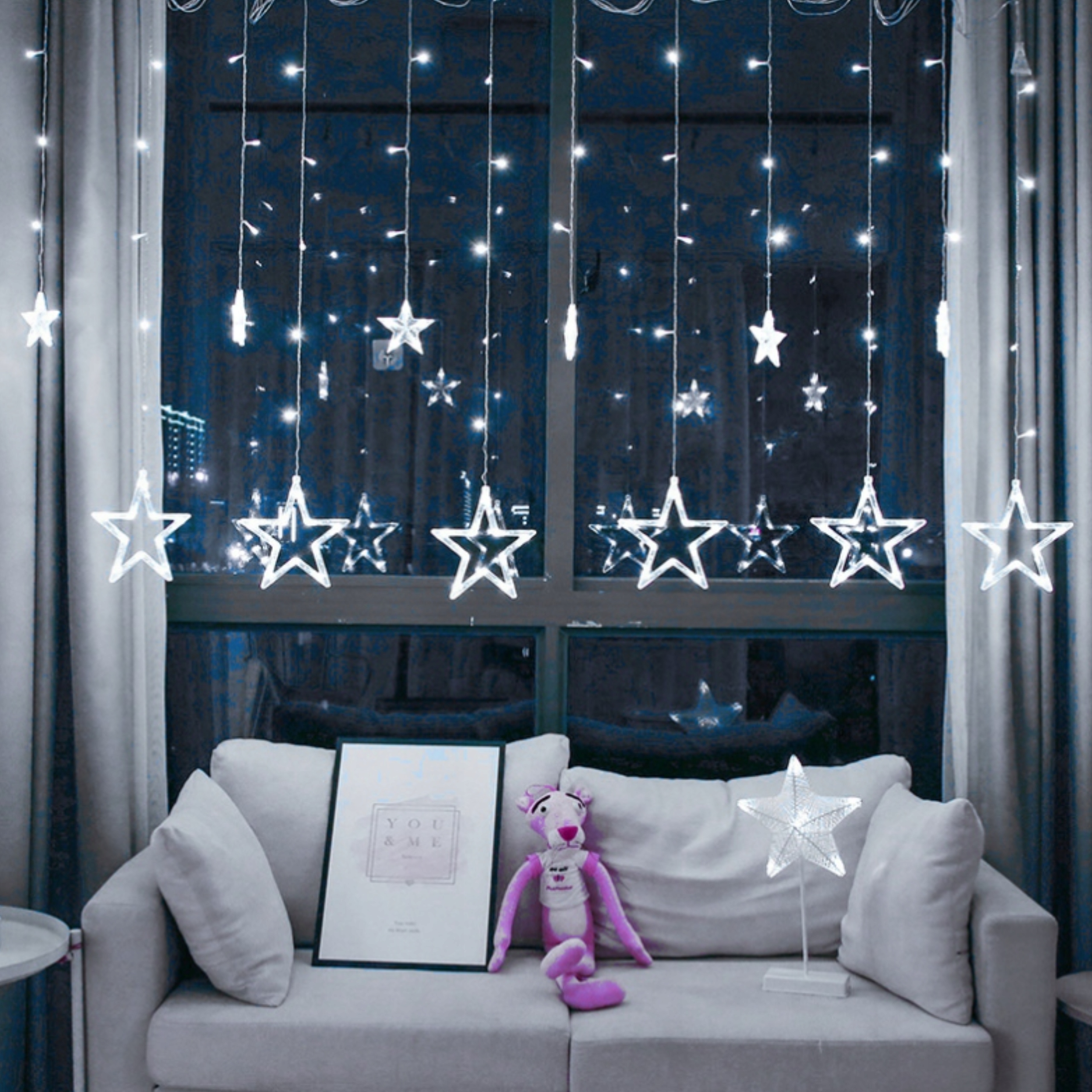 СВІТЛОДІОДНІ ЗІРКИ ПІДВІСНІ ЛАМПИ РІЗДВЯНІ ІКІЛЬСЬКІ ШТОРИ Віконна гірлянда + БЕЗКОШТОВНО