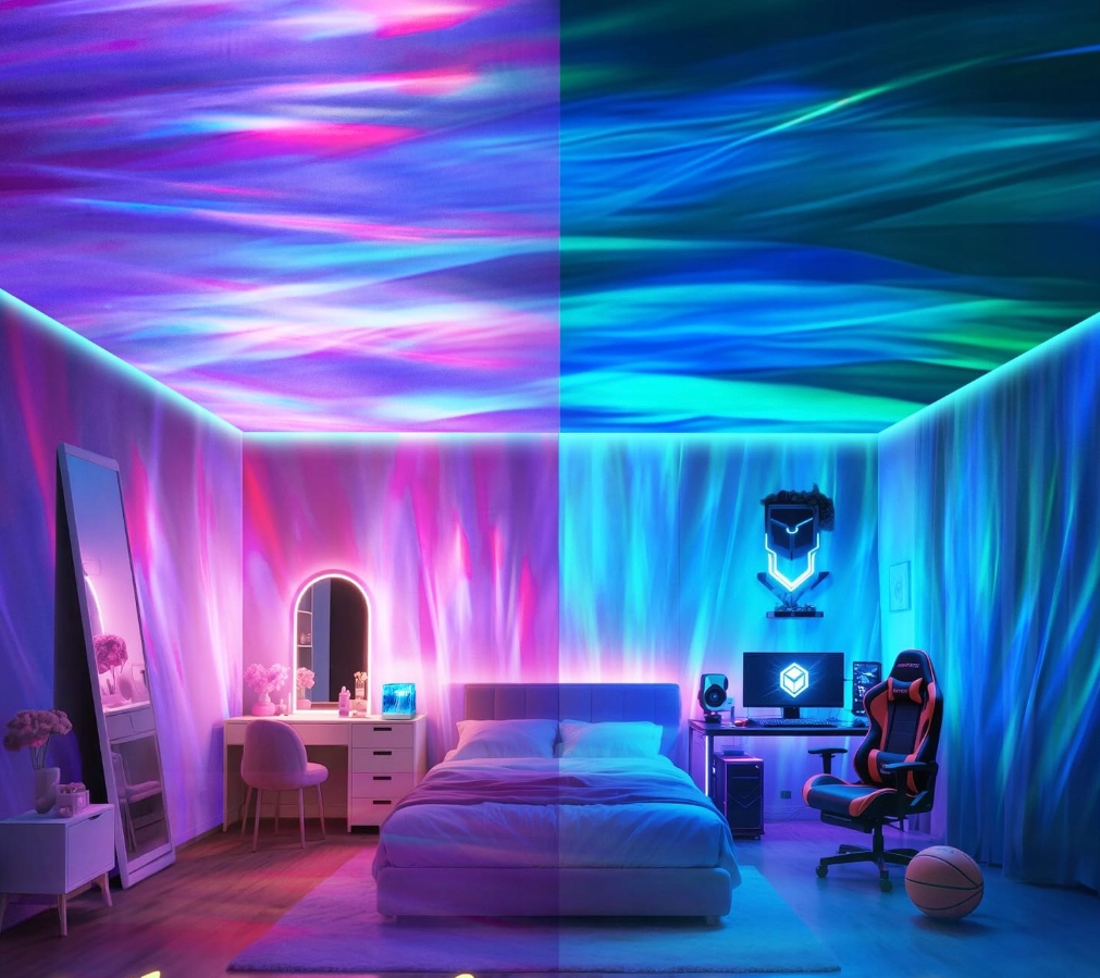 Проектор Aurora оснащений щонайменше 18 комфортних полярних -aurras j, який може перетворити вашу спальню на прекрасну фею -тюрову пейзаж і створити розслаблюючу та приємну атмосферу. Діти та дорослі засинають і створюють ідеальну атмосферу для вашої нічної спальні для дітей. Проектор Aurora створює ідеальну атмосферу для сну, розслаблення і не тільки.