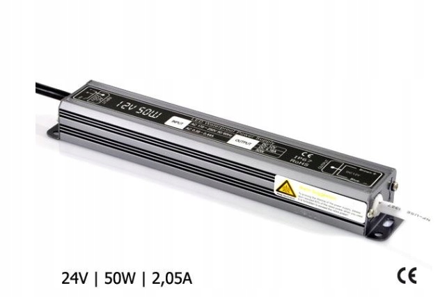 Назва: ВОДОСТІЙКИЙ СВІТЛОДІОДНИЙ БЛОК ЖИВЛЕННЯ SLIM / IP67 / 24 В / 2,05 А / 50 Вт