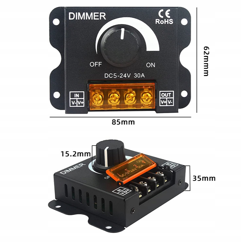СВІТЛОДІОДНИЙ ДІММЕР РУЧНИЙ 30A 12-24V LED РЕГУЛЯТОР СВІТЛОВОЇ НАПРУГИ