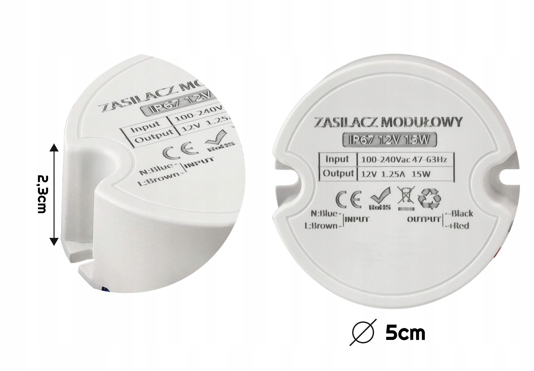 - Модель: водонепроникний світлодіодний блок живлення 1,25 A 15W IP67 12V