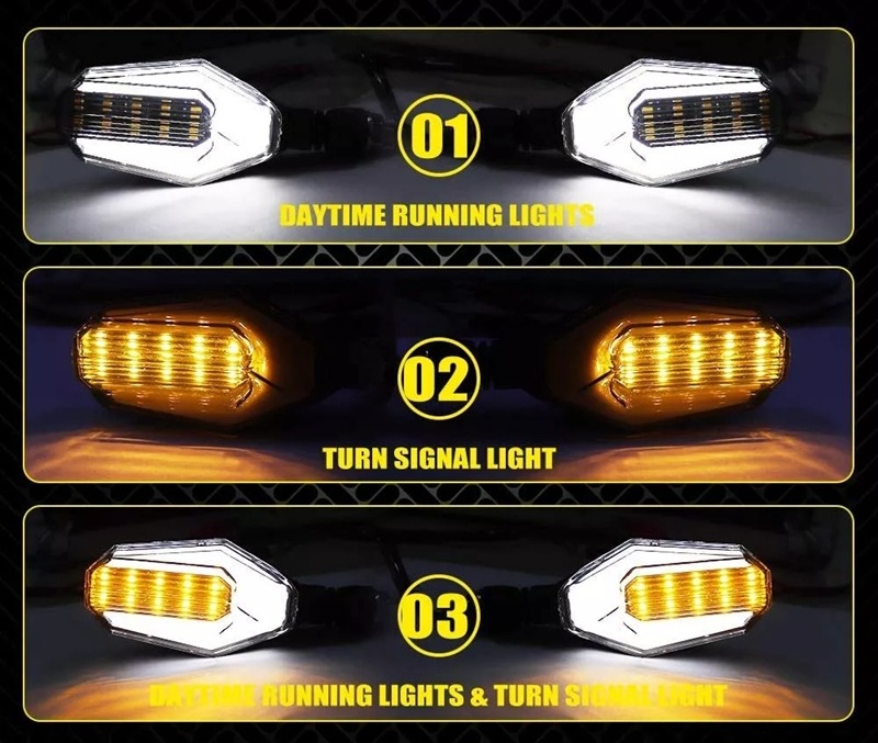 ✅Оснащений 4 покажчиками повороту, які можна встановити спереду, ззаду, ліворуч і праворуч на вашому мотоциклі, квадроциклі одночасно, забезпечуючи кращі візуальні ефекти та безпеку. Підходить для різних моделей мотоциклів, скутерів і квадроциклів