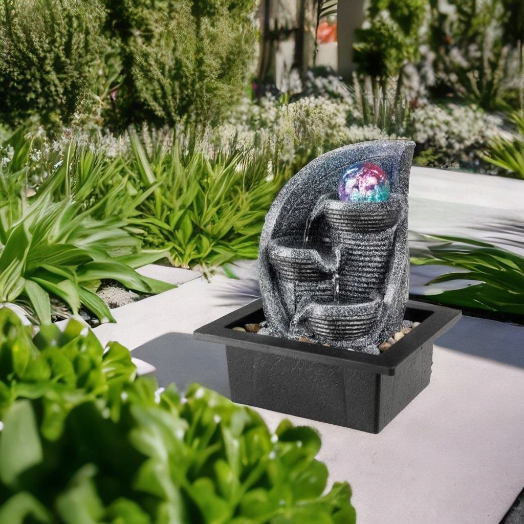 Візуально фонтан виглядає ніби зі справжнього каменю - а завдяки світлодіодному підсвічуванню ви отримуєте щось унікальне і ефект набагато ефектніший.