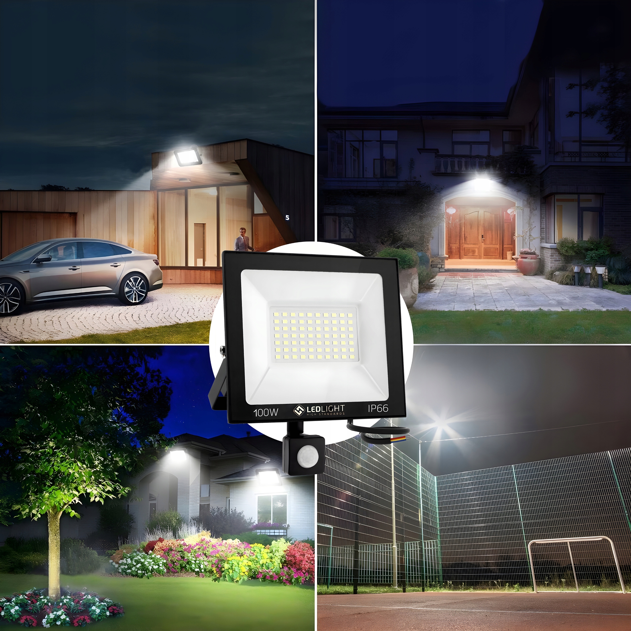 ✅ Висока потужність 100 Вт з датчиком руху та сутінків забезпечує яскраве та ефективне освітлення, що робить його ідеальним для двору, майстерні чи будівельного майданчика.