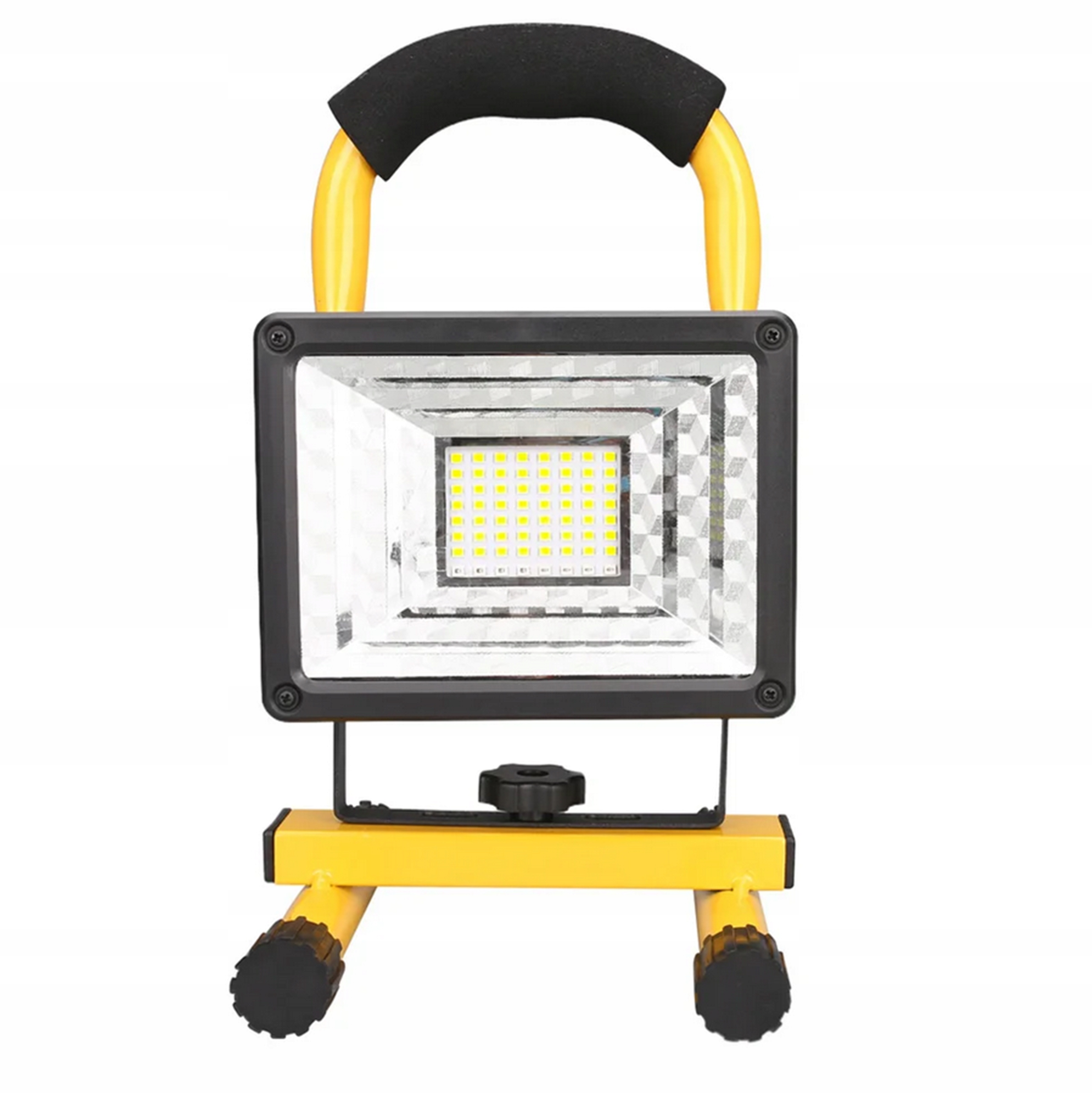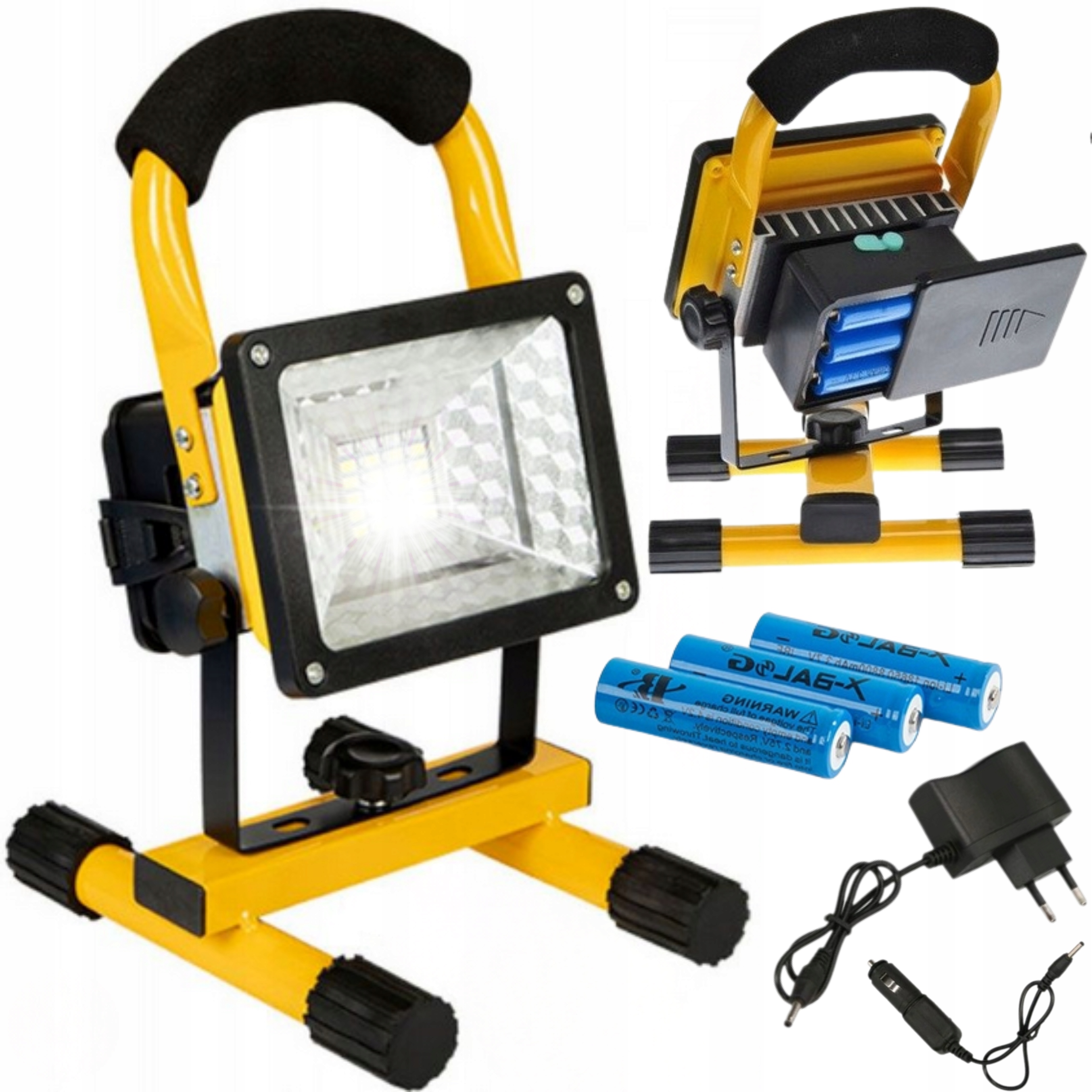 практичним , портативним галогеном світлодіодним SMD з потужністю 30w , оснащеним комфортною ручкою та стабільної стійки . Набір включає батареї та два зарядні пристрої - автомобіль та традиційна мережа. Лампа може бути живлення обидва від батарей і безпосередньо з мережі 230В через зарядний пристрій.