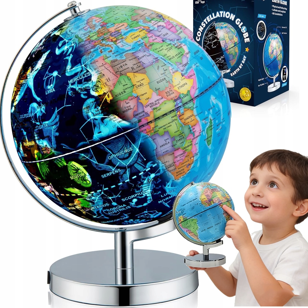 Глобус надзвичайно корисний для вивчення географії, дослідження сузір’їв та інтелектуального розвитку. Він стимулює дитячу уяву та творчі здібності, будучи ідеальним доповненням до шкільного класу або елегантною прикрасою столу вдома чи в офісі.
