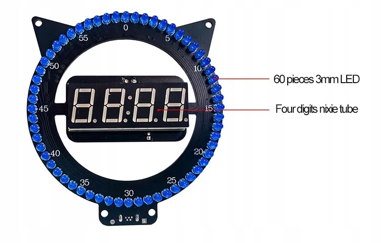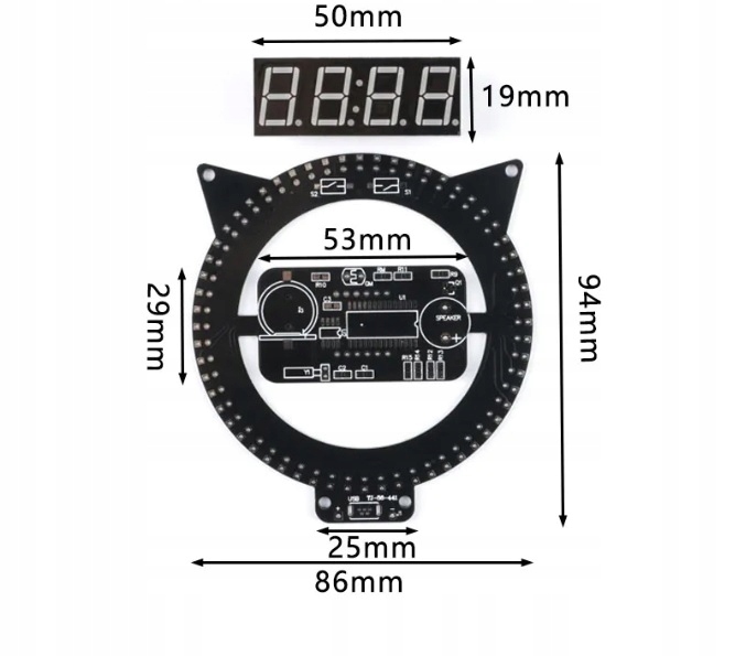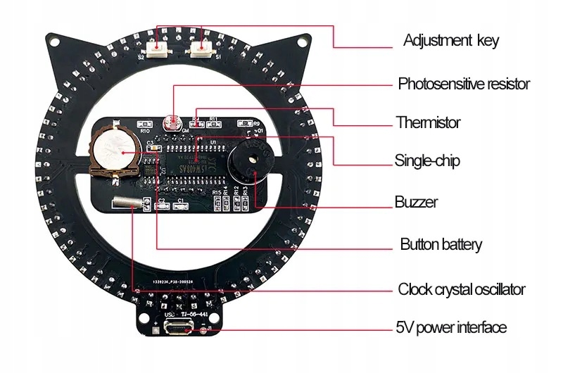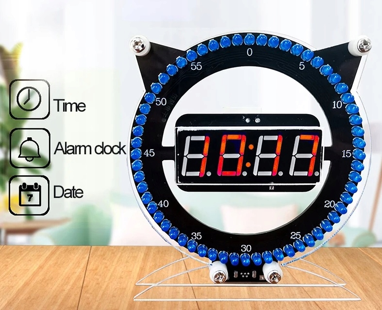 Світлодіодний годинник CAT EARS. Червоний SMD-дисплей з корпусом DIY KIT