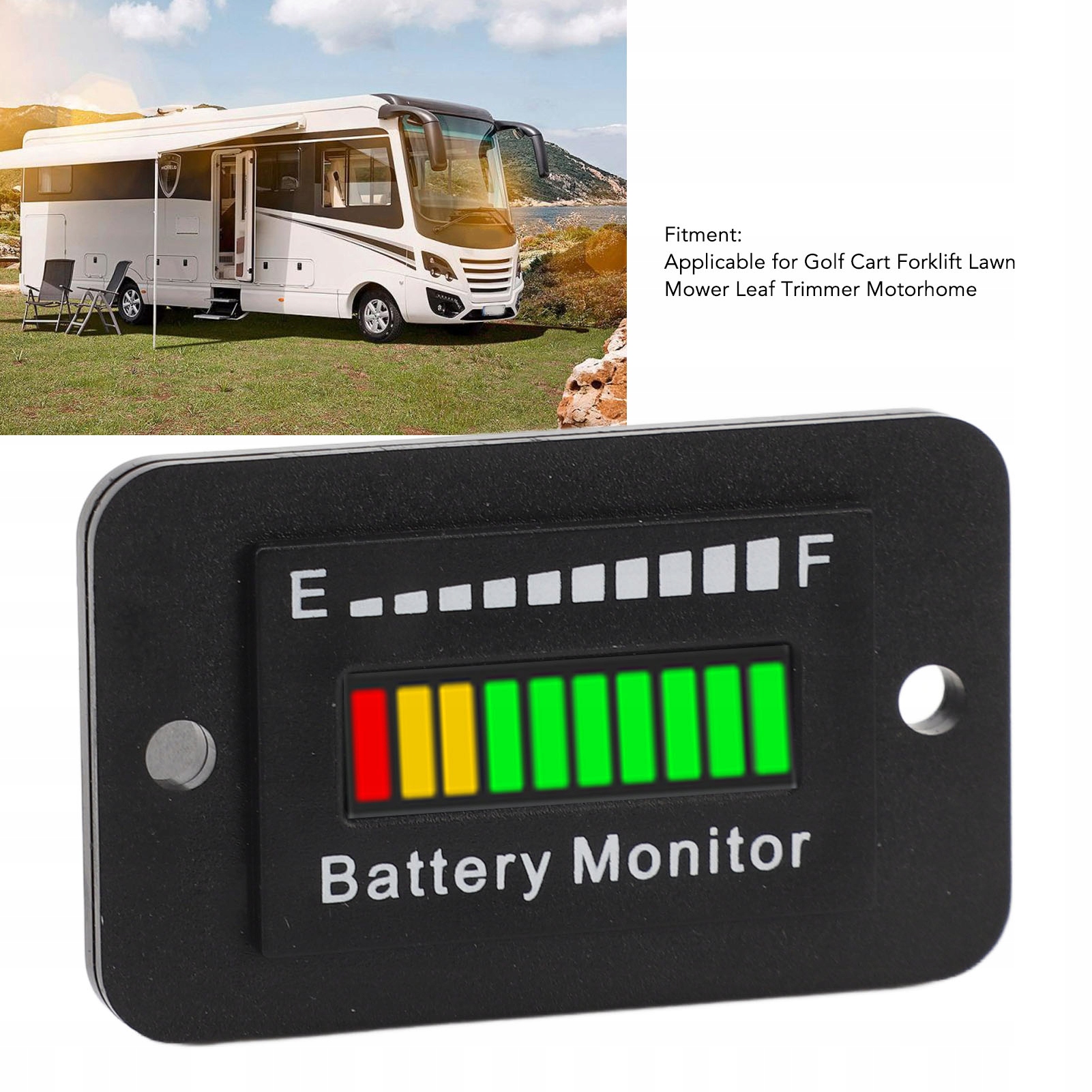 5. Універсальне використання: підходить для різних транспортних засобів з акумуляторним живленням, таких як візки для гольфу, вилкові навантажувачі або газонокосарки. Цей монітор надає користувачам швидкий і точний спосіб визначити залишок заряду батареї.