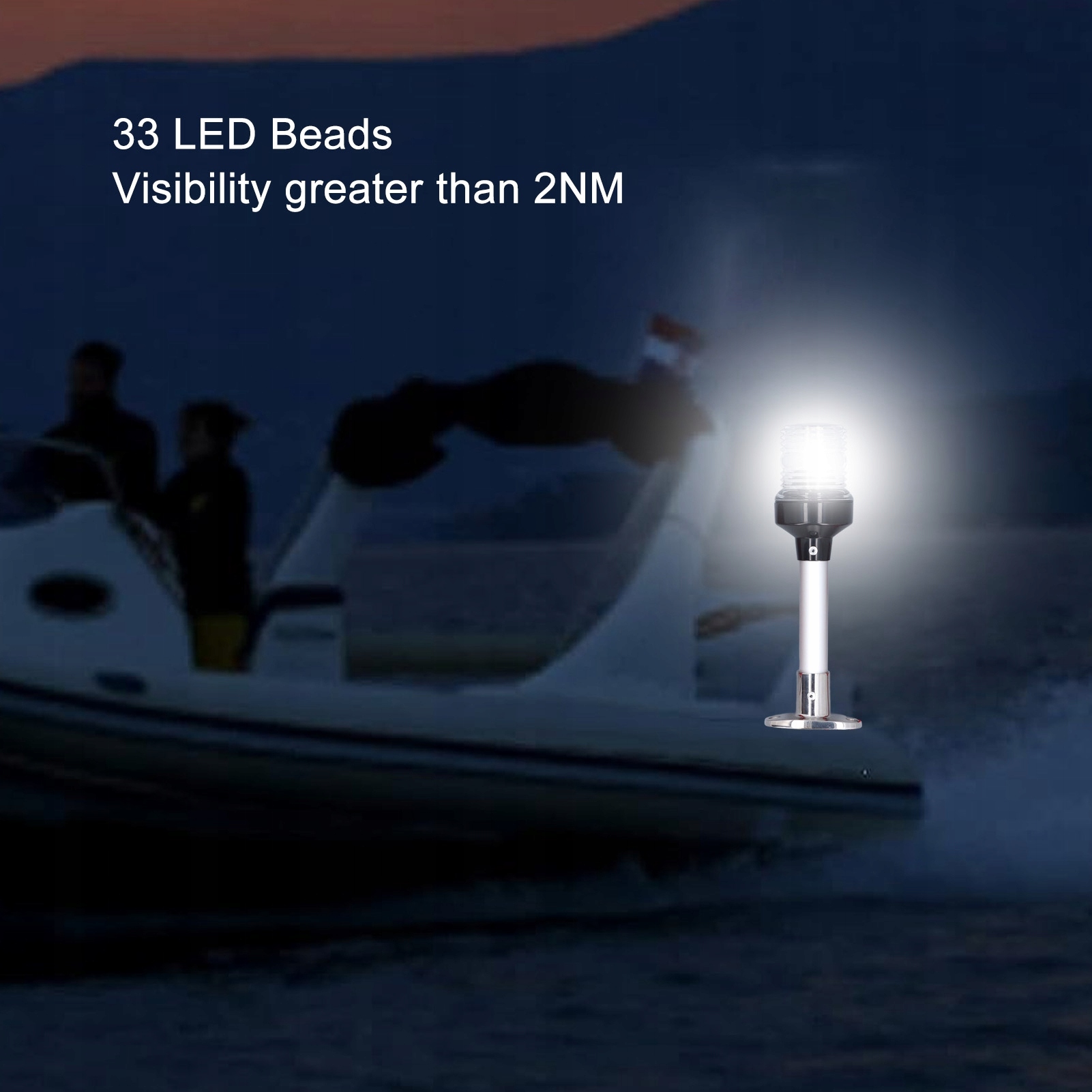2. [3 морські милі Видимість] Якірний ліхтар із 33 світлодіодами забезпечує видимість понад 3 морські милі, забезпечуючи більшу безпеку під час навігації.