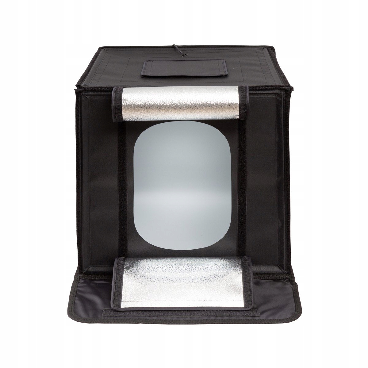 Світлодіодний куб - це повний набір для фотографії продукту дрібних предметів, що дозволяє легко отримати чіткі та добре оголені фотографії. Намет інтегрував світлодіодне освітлення, завдяки якому його можна використовувати без перешкод з камерами або смартфонами. Додаткові світильники або дифузатори не потрібні, оскільки всі необхідні елементи включаються до набору. Стіни намету постійно були пришиті в рамці рами, і ціле з'єднане з липучкою, завдяки якому підготовка світлодіодного куба для роботи триває буквально кілька секунд.