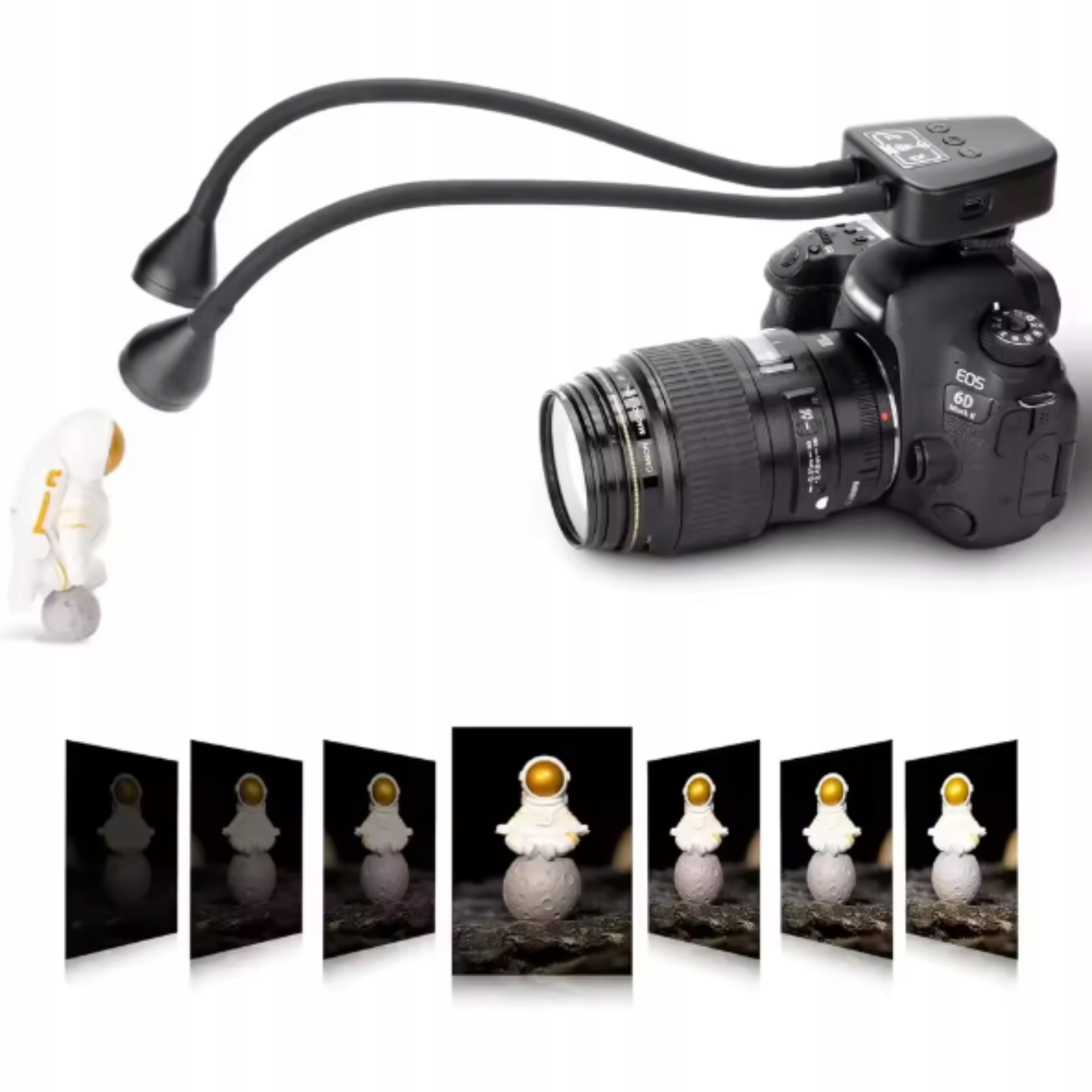 - ✔️ Подвійні гнучкі кронштейни 29 см із точним регулюванням – Дві кронштейни максимальною довжиною 29 см, виготовлені з преміального алюмінію, покритого м’яким силіконом, дозволяють легко регулювати кут і напрямок світла, чудово висвітлюючи макрооб’єкти, як-от комахи, квіти чи прикраси – свобода творчості в кожному знімку!
