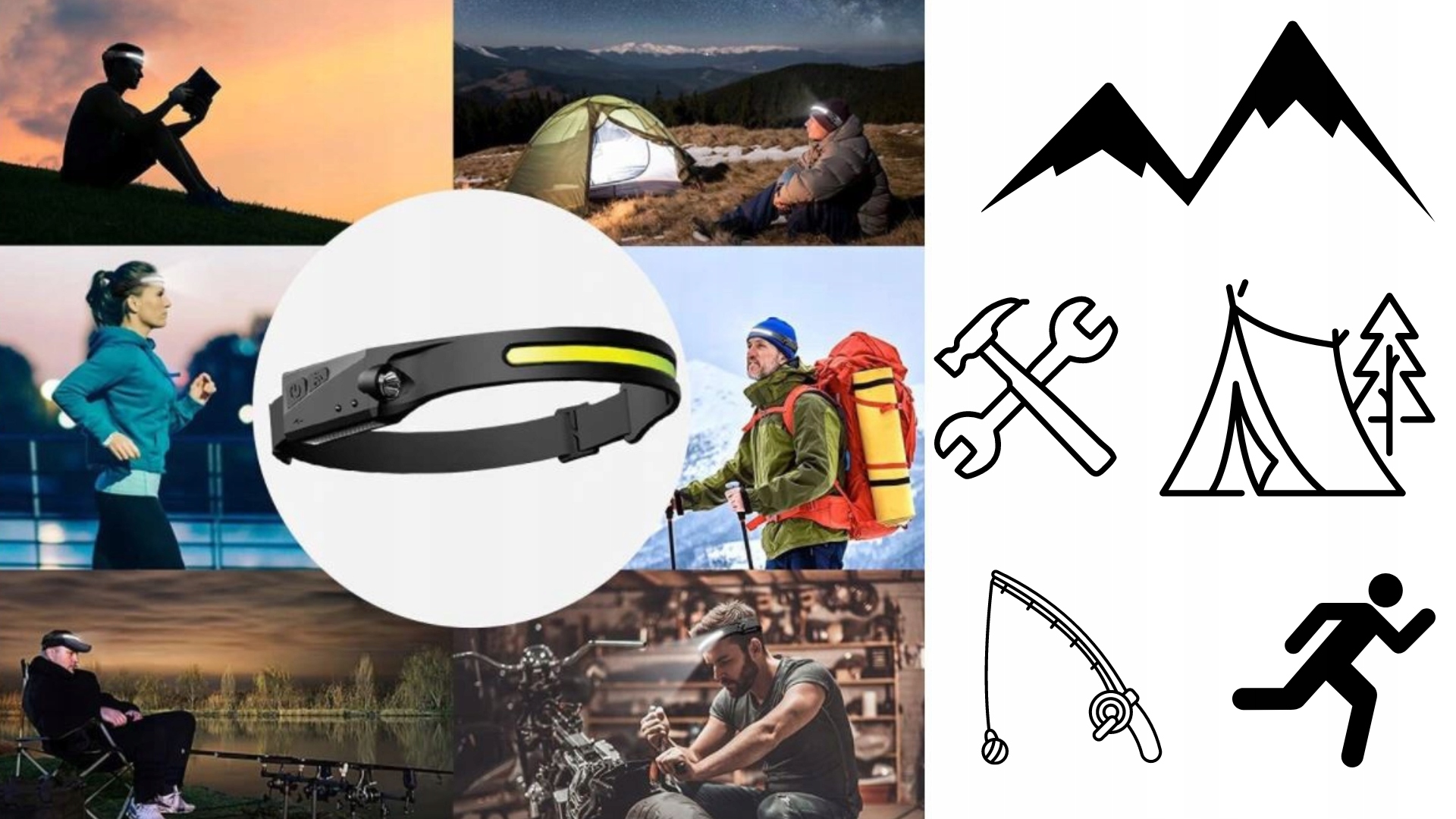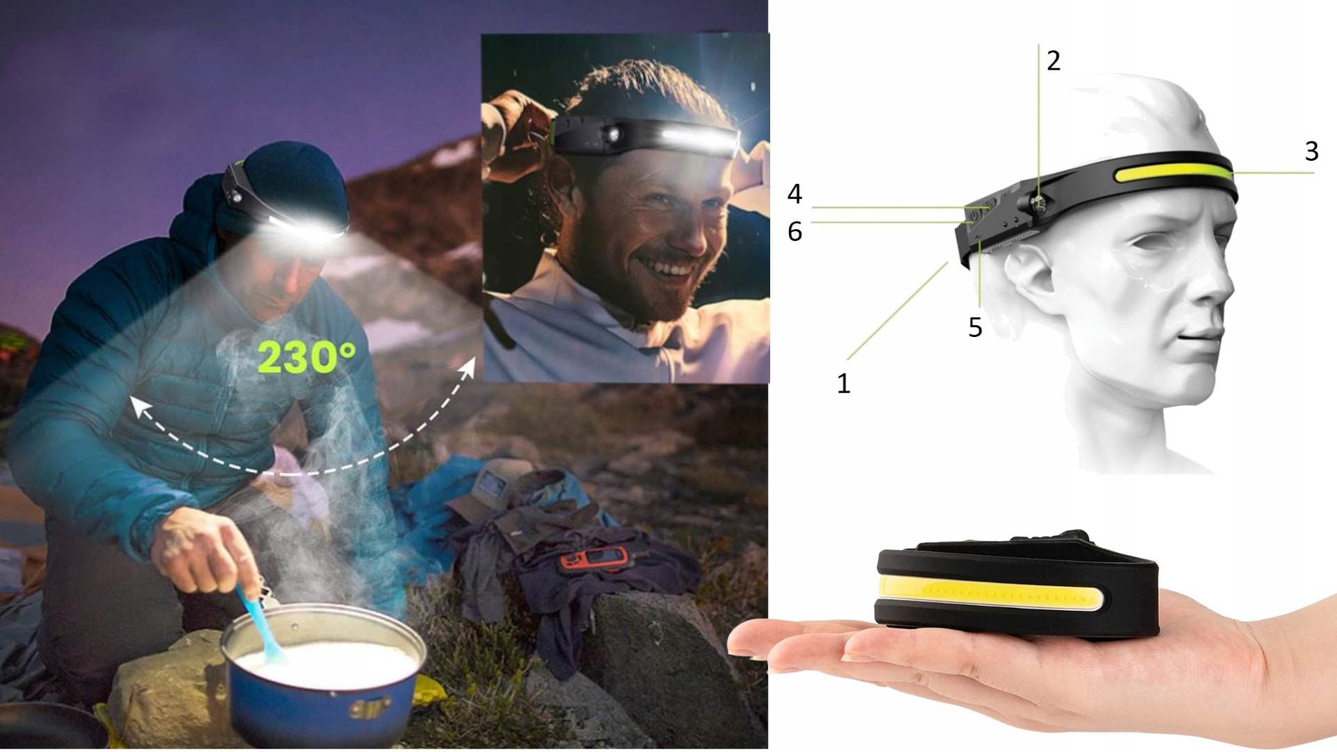 - ✅Два джерела світла -COB діод з ширококутним освітленням з дальністю 50 м і світлом 350 лм і LED діод, що генерує промінь світла з дальністю 60 м і яскравістю 150 лм