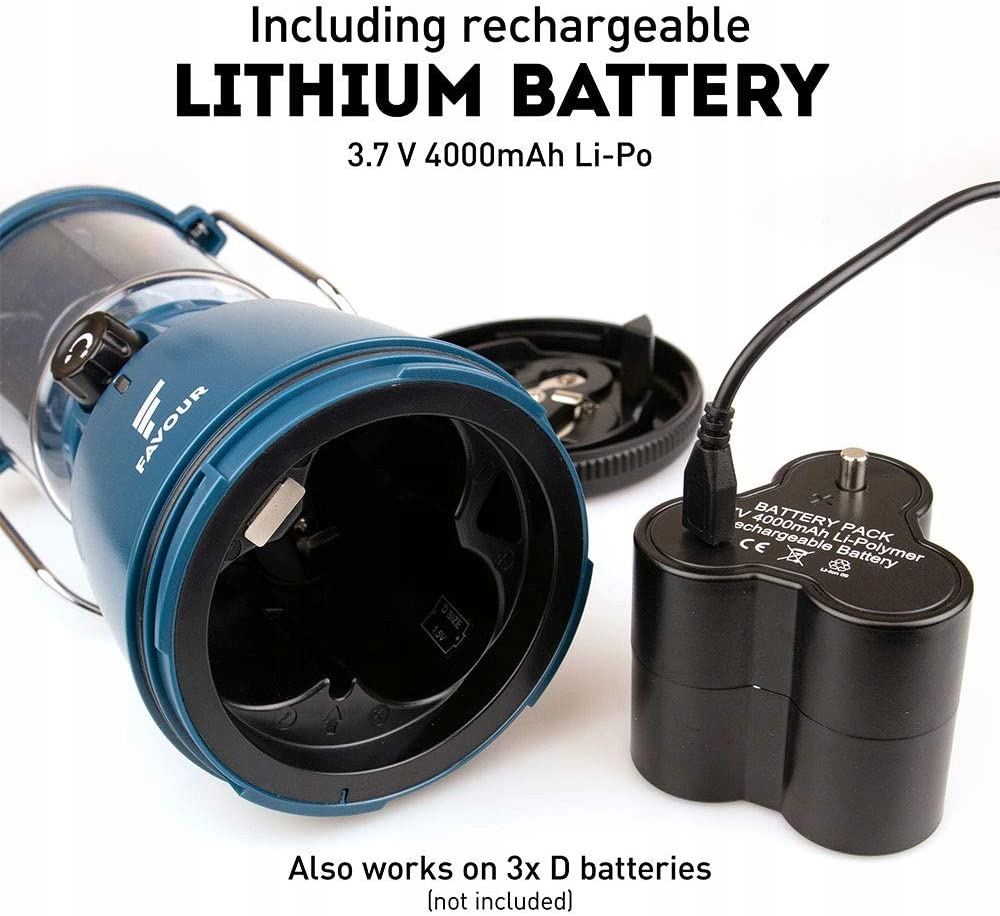 Лампа видає світлову потужність від 18 до 320 люмен. Батарея заряджається через USB і працює до 128 годин. Оснащений змінною світлодіодною лампою з ниткою розжарювання. На передній панелі є поворотна ручка, за допомогою якої можна плавно приглушити світло. Ліхтар також має режим освітлення свічками, який імітує затишне світло мерехтливої свічки.