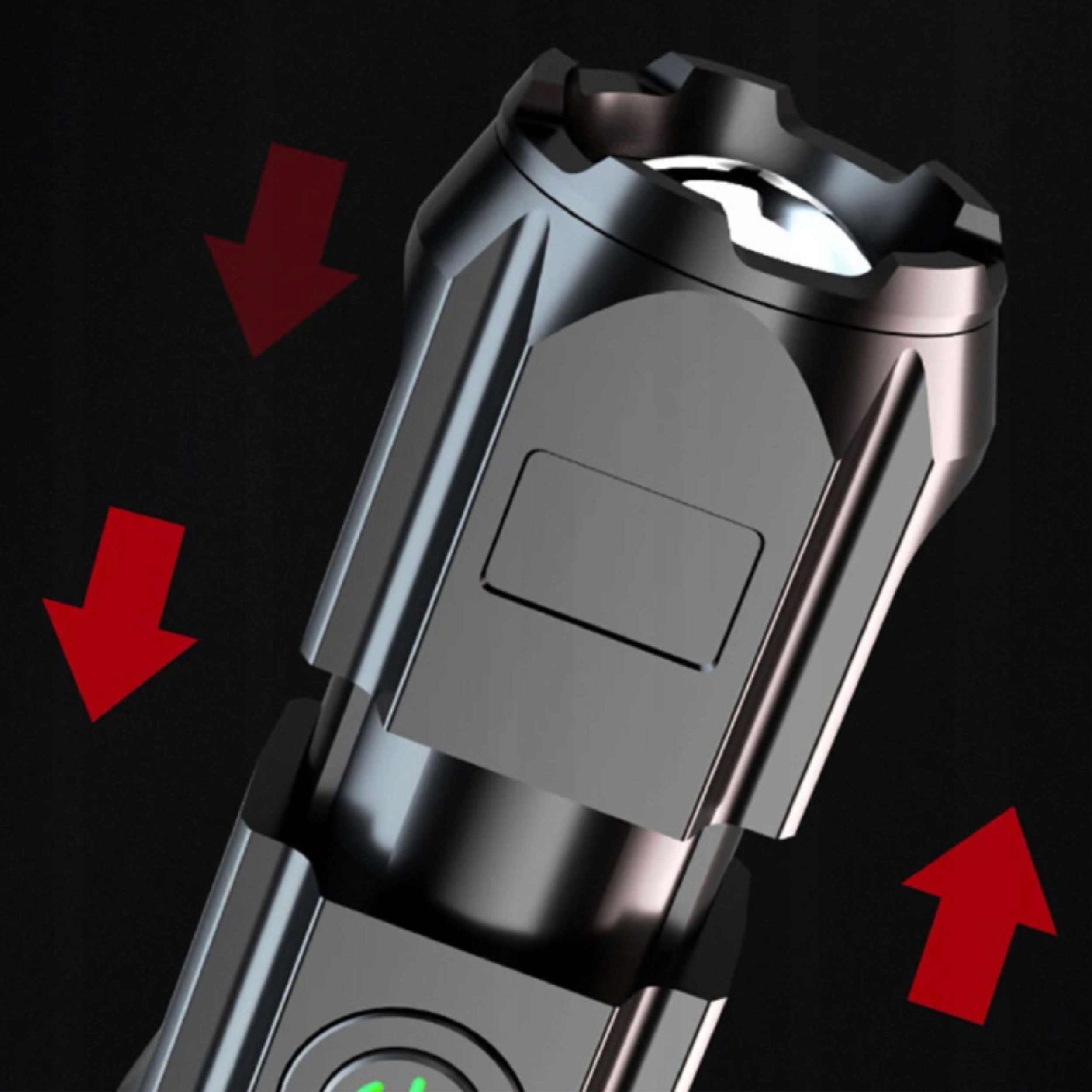 - Телескопічна функція: Завдяки регульованому фокусуванню ви можете відрегулювати світловий промінь до своїх потреб - широке світло до освітлення близьких ділянок або вузький, інтенсивне промінь дальнього дальності.